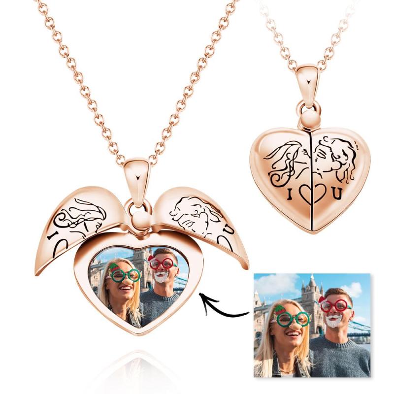 Custom Photo Necklace "L Love You" Heart-shaped Flap Delicate Gifts