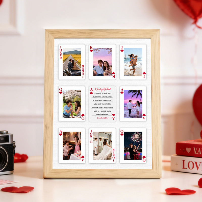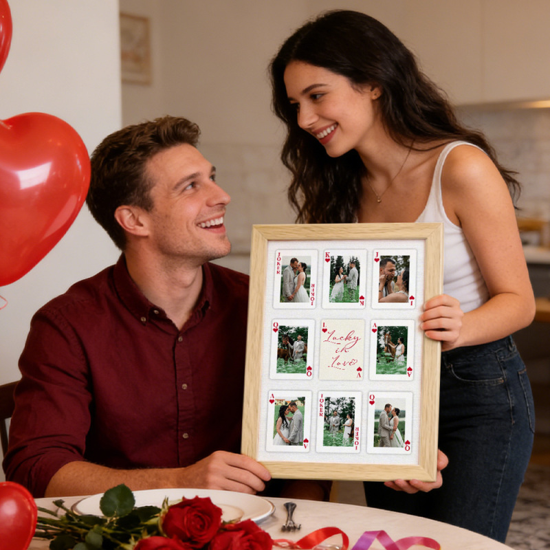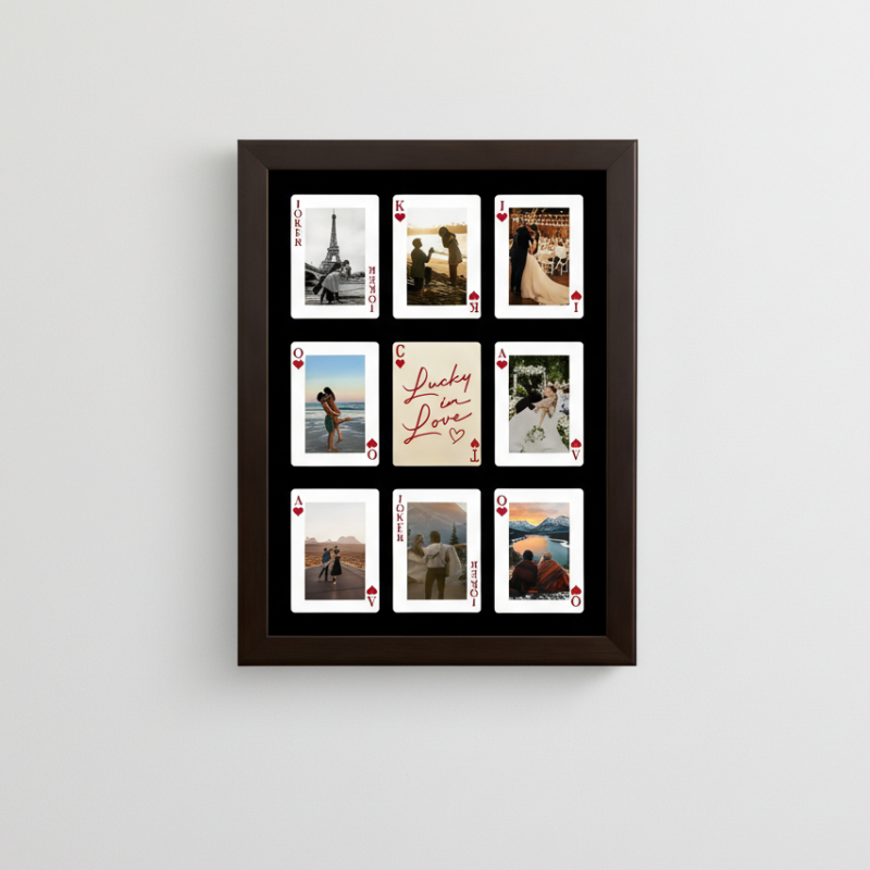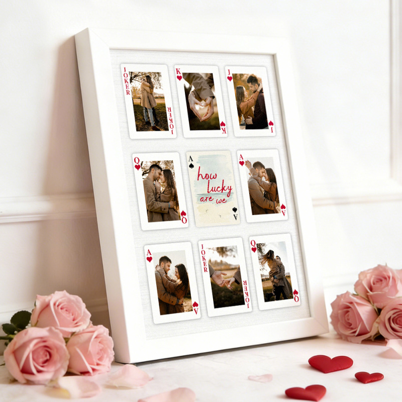 Turn your love story into a work of art. This Custom Photo Playing Cards Frame transforms your favorite memories into a romantic playing card–inspired design, blending modern wall art with meaningful personalization. Inspired by the viral "How Lucky Are We" love poster aesthetic, it’s more than a gift-it’s a visual reminder of connection, luck, and shared moments.