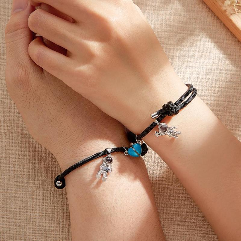 Special mutual attraction bracelet, coming with a magnetic glow-in-the-dark heart shape. No matter where you are, once we put the twp bracelets together,they will mutual attraction when getting closer. These couples bracelets are symbolizing the eternal love and friendship between Lovers or Friend.