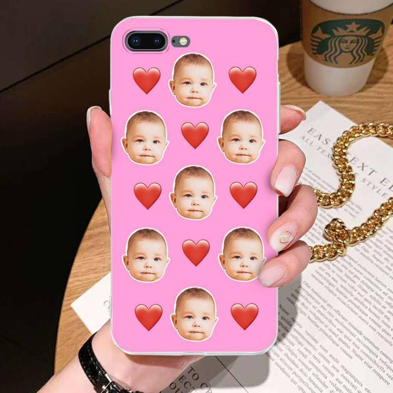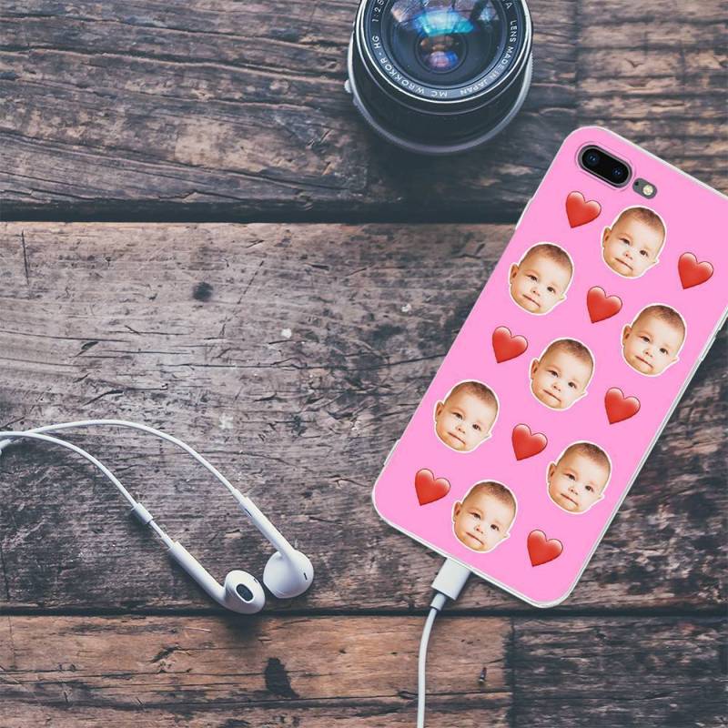 Custom Photo Protective Phone Case Soft Shell Light Pink Mesh Face with Heart - iPhone 7/8