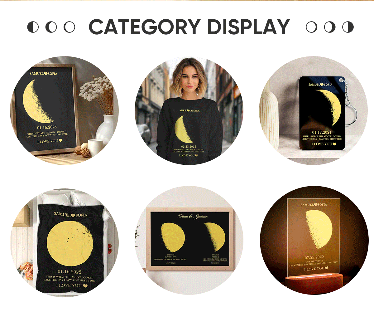 Custom Moon Phase Round Neck Unisex Sweatshirt Personalized Names Crewneck Sweatshirts Valentine's Day Gifts for Couple