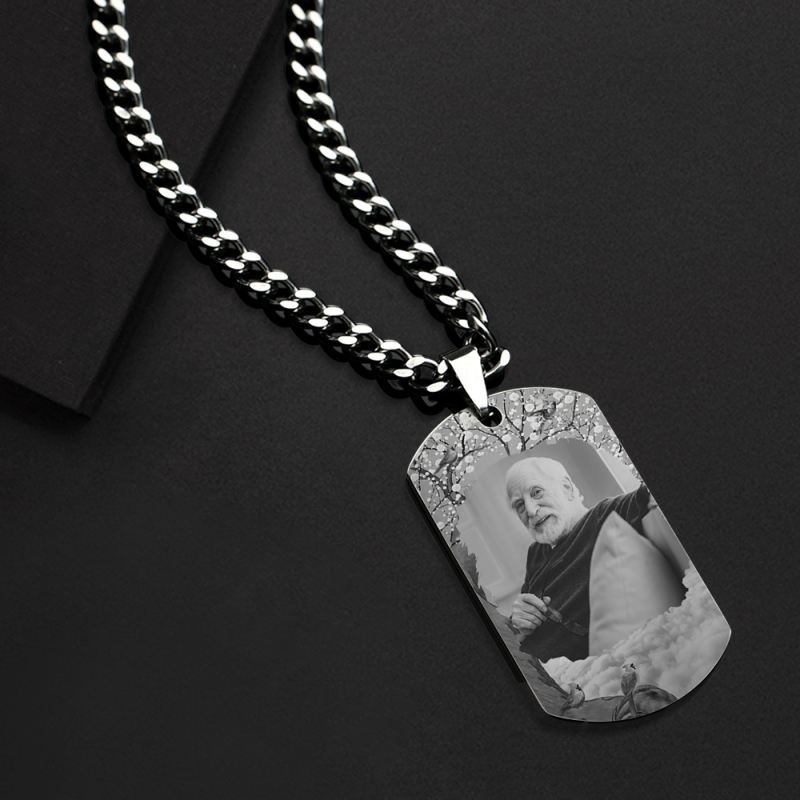 Made from high-quality metal, this necklace showcases a sleek and durable design. The metal surface has a refined texture, adding a touch of elegance to the overall look. Whether worn casually or for a special occasion, it is a meaningful accessory that allows men to carry their memories close to their hearts.