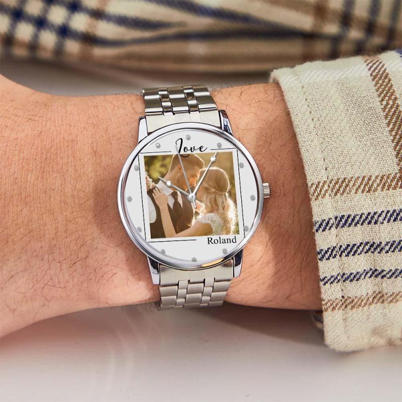 Custom Engraved Photo Watch for Men Personalized Engraved Picture Watch for Husband Valentine's Day