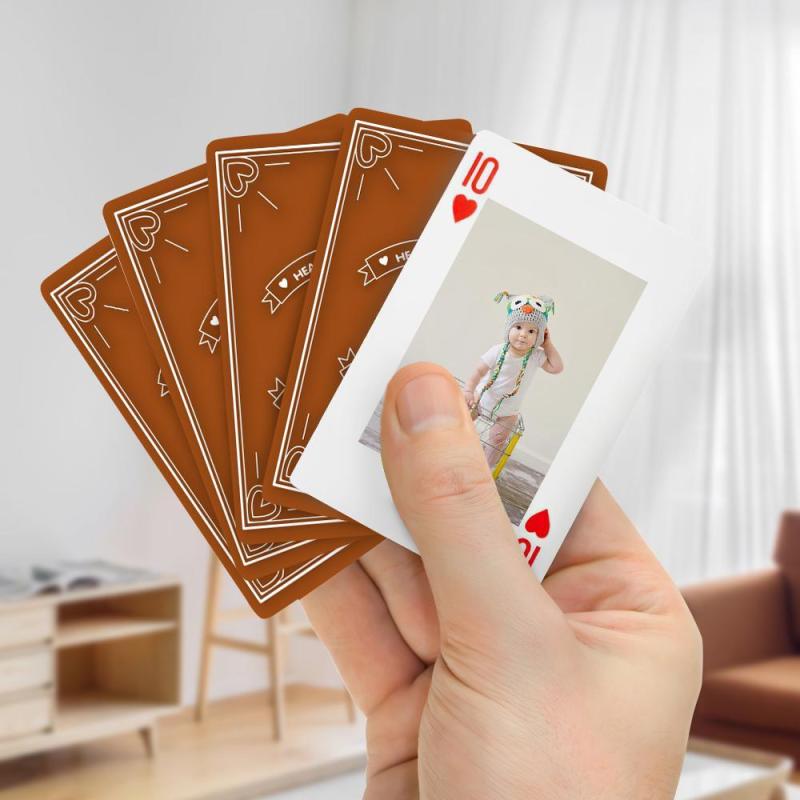 Designed for those who want to customize the backs of playing cards - this poker size version has a standard index front and allows you to customize the backs of your deck with your logo / advertisement and text. Upload and drag 1, 2, or 15 different artwork designs to the card. Each deck of cards uses the finest card stock and undergoes quality digital printing to keep your prints looking sharp and crisp.
