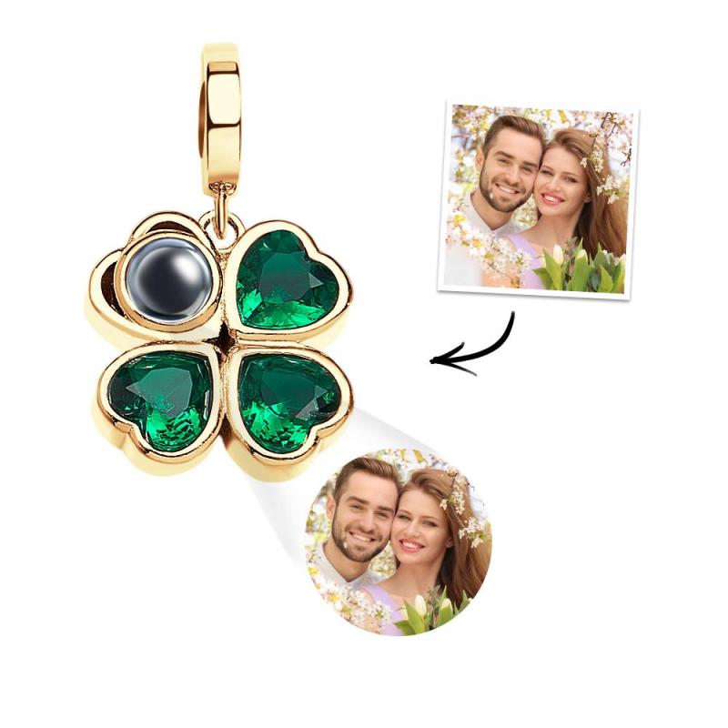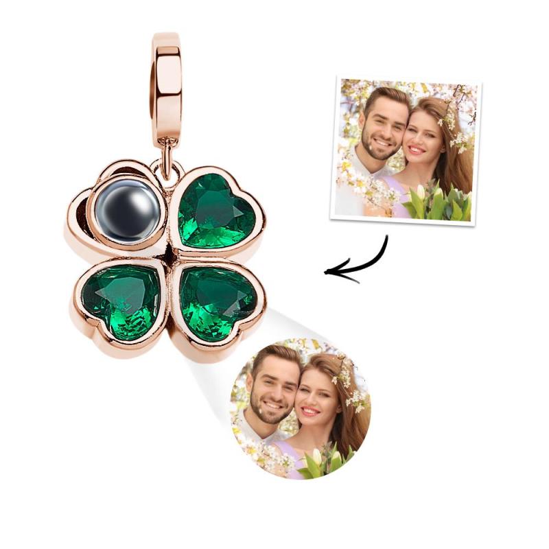 Custom Projection Charm Four Leaf Clover Couple Gift