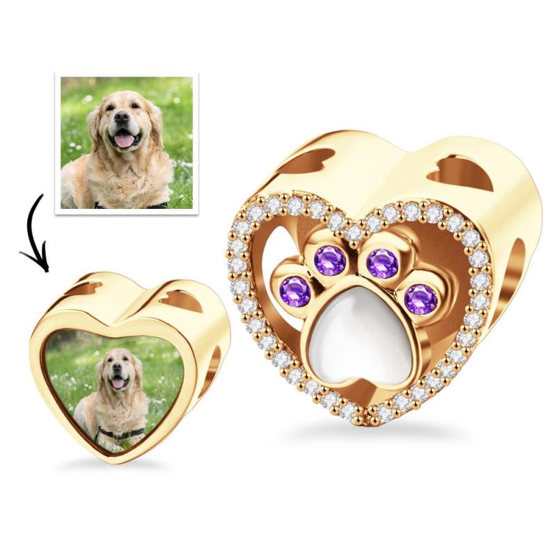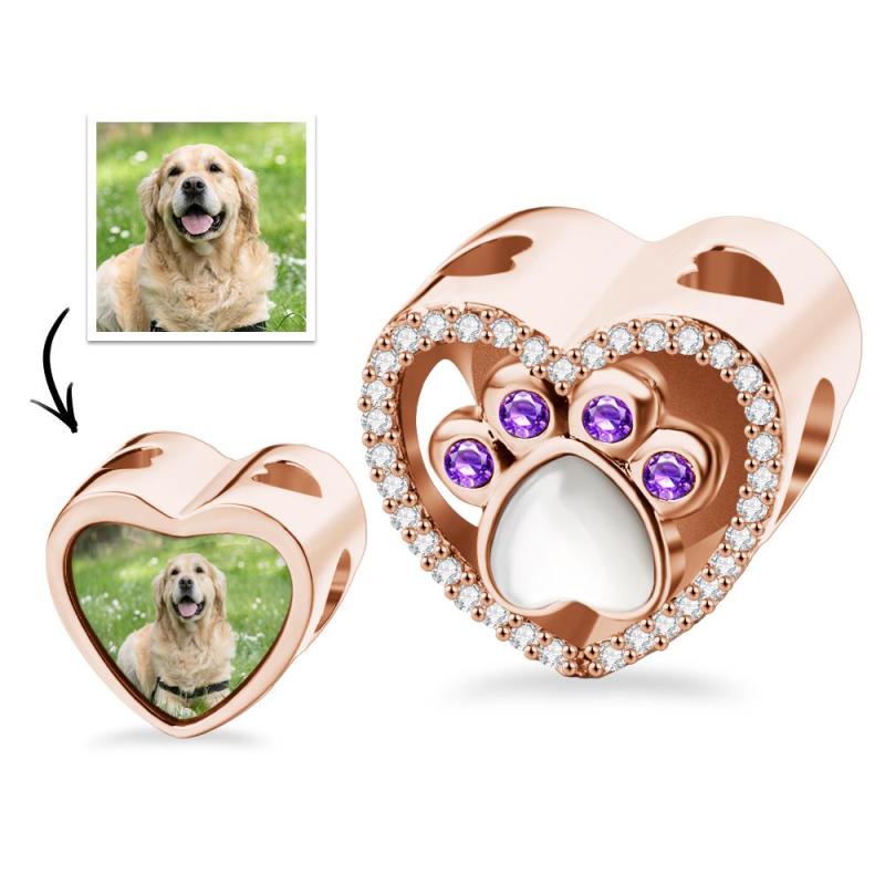 Custom Projection Charm Gem Paw Prints Gift for Pet