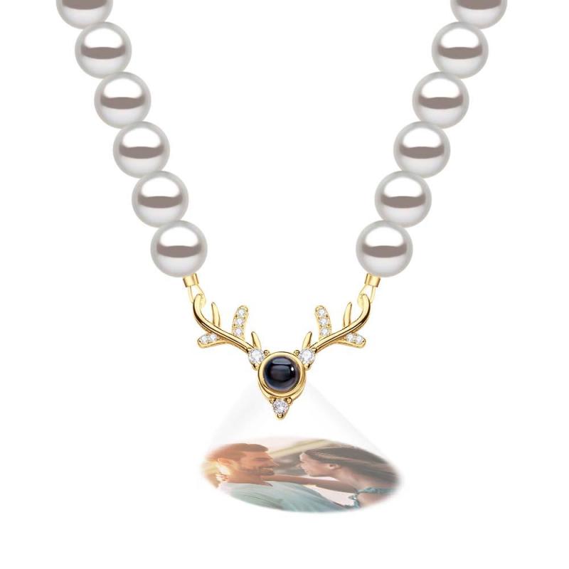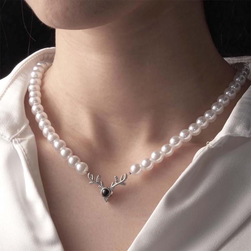 Custom Projection Necklace Antlers Pearl Chain Romantic Gift