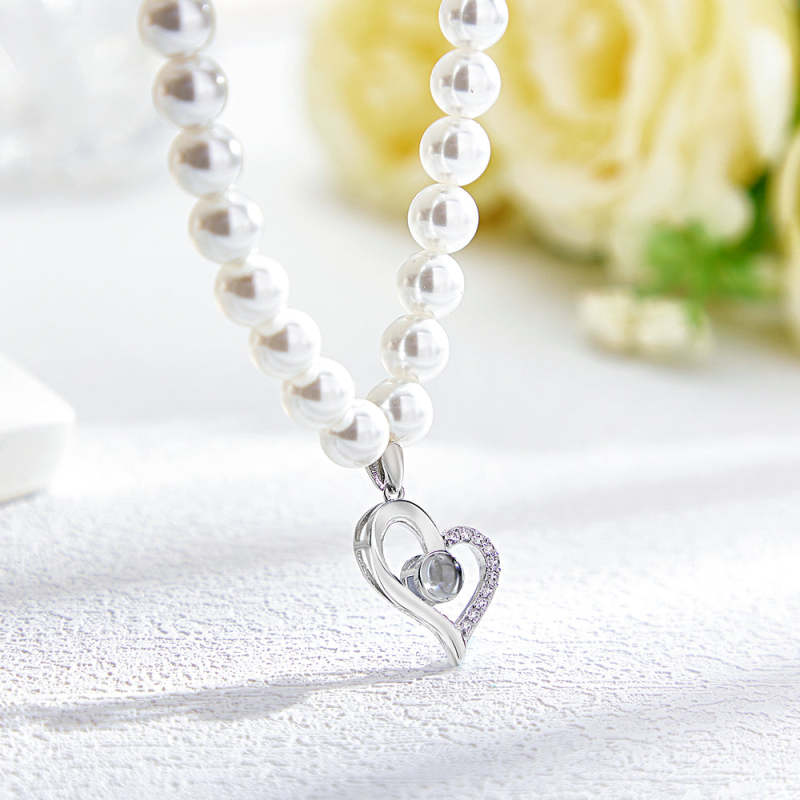 Custom Projection Necklace Diamond Heart Pearl Gift for Her