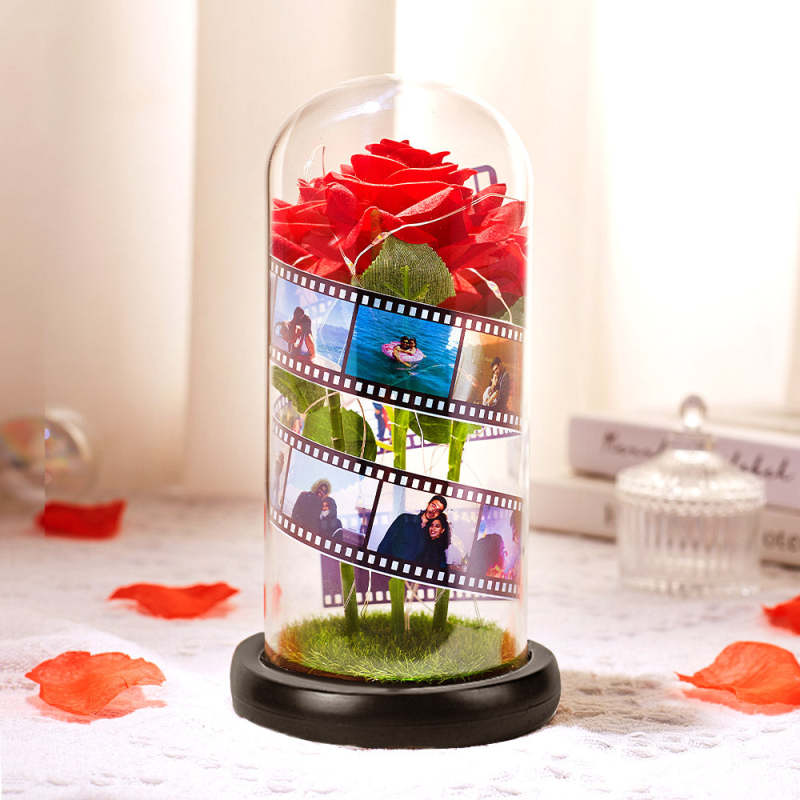 A rose is a symbol of love and affection. These are simply perfect to give a loved one as a gift. It can also be used as a graceful home decor item for your dining room shelf! You can put photo film in roses and turn "precious memories" into the most exquisite souvenirs. 5-20 pictures can be customized, please upload a rectangular picture, otherwise it is easy to cut the characters or background during customization.
