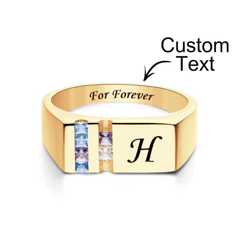 Custom Text Birthstone Ring 18k Gold Plated Personalized Family Ring Gift For Her