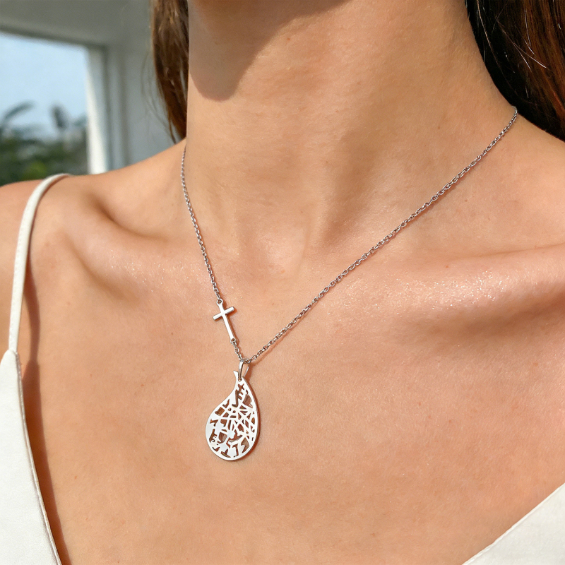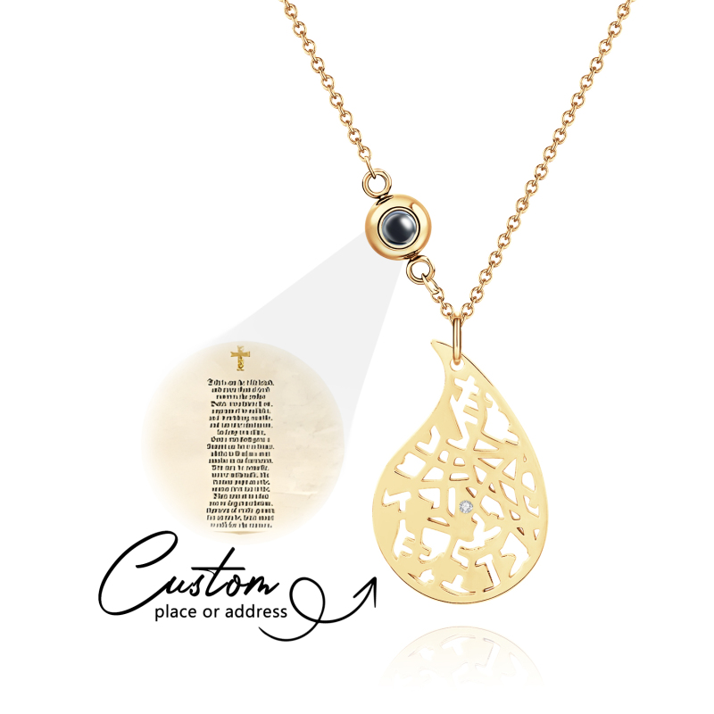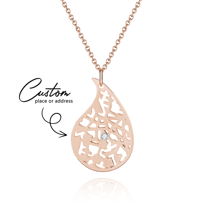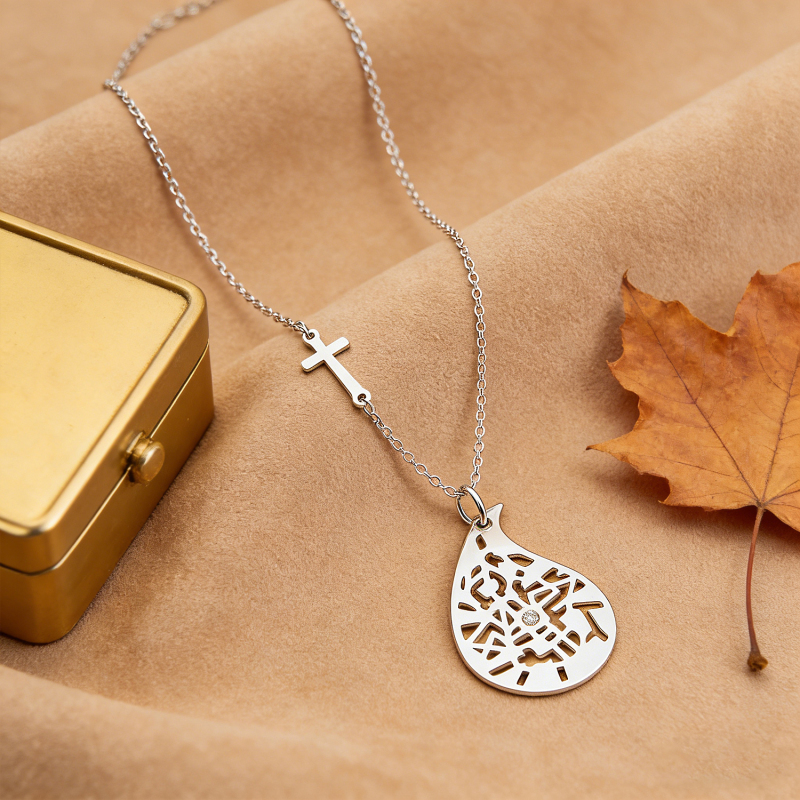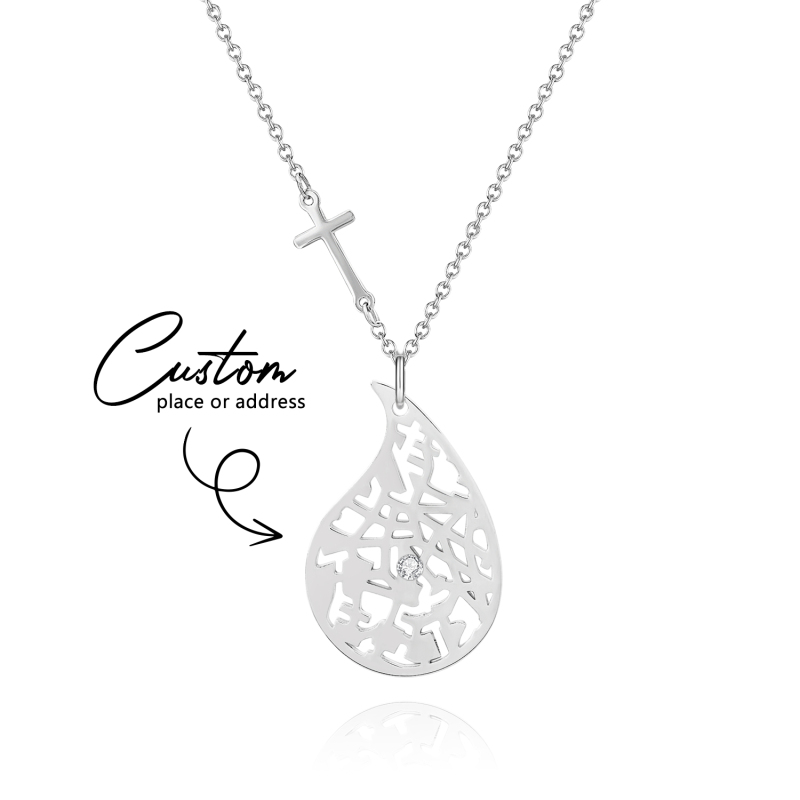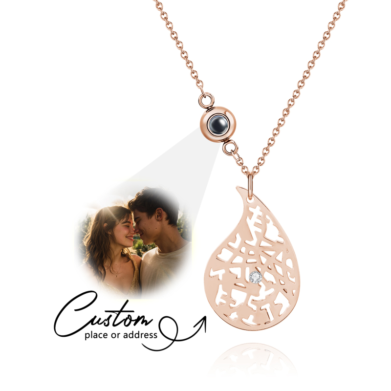 Capture memories from your special places with our Custom Map Necklace. This romantic charm traces a personalized map outline inside a heart, turning your favorite moments into wearable art. Choose from multiple chain styles-Plain, Cross, or Projection Bead-to suit her style, and add a touch of sparkle with optional gemstones for an extra romantic glow. Perfect as an anniversary gift or a thoughtful surprise for her, this necklace is a timeless keepsake she’ll treasure.