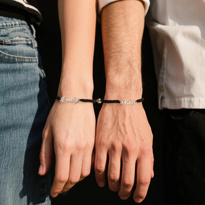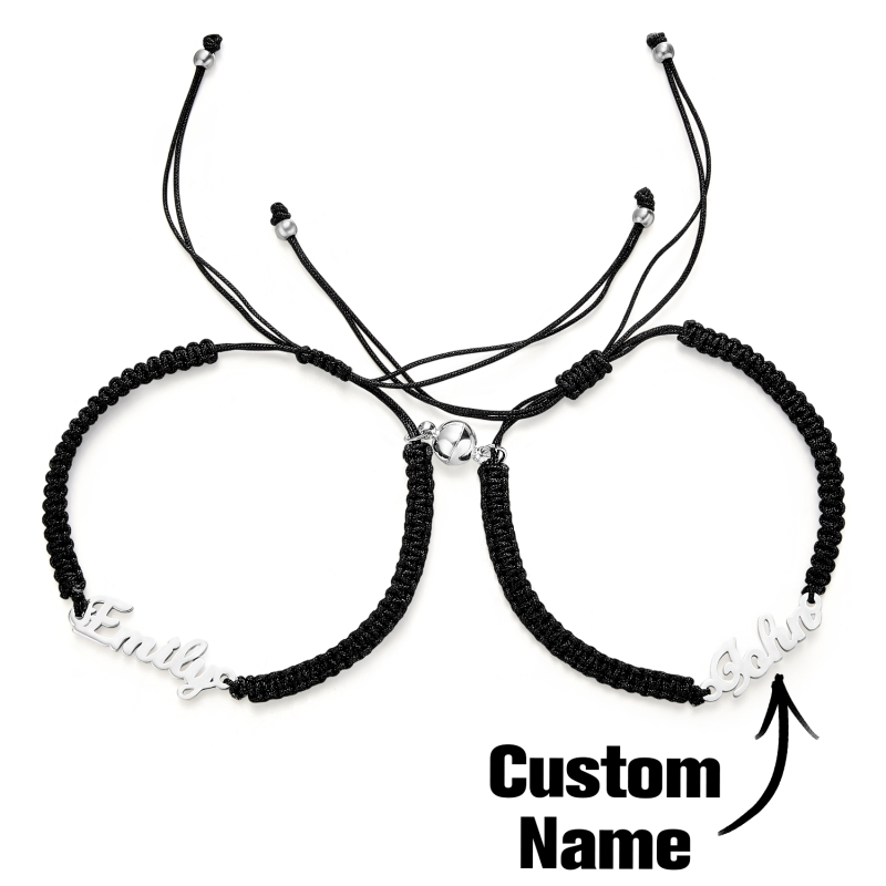 Express your love and commitment with our elegant Custom Braided Name Bracelet with Magnetic Couple Design. This personalized bracelet is specially crafted to symbolize the unbreakable bond between couples. Made from high-quality materials, it features a stylish braided style that offers both strength and a modern look. The bracelet can be customized with your names or special words, making it a truly unique piece that echoes your personal story.