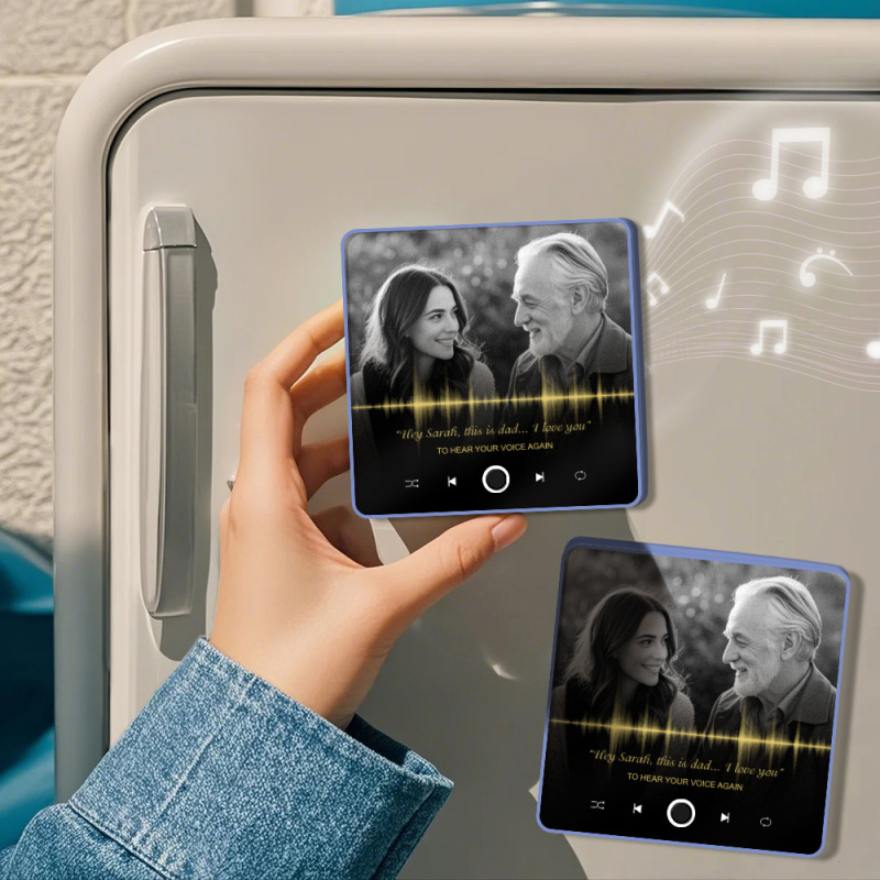 Capture the voices and moments you cherish most with this customizable fridge magnet. Record or upload audio to play anytime—keeping loved ones close, even when they're far away.