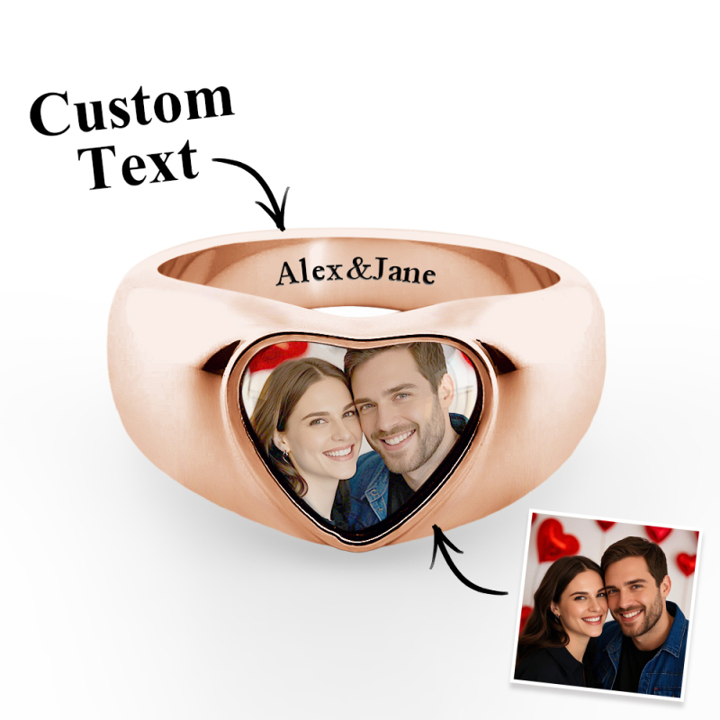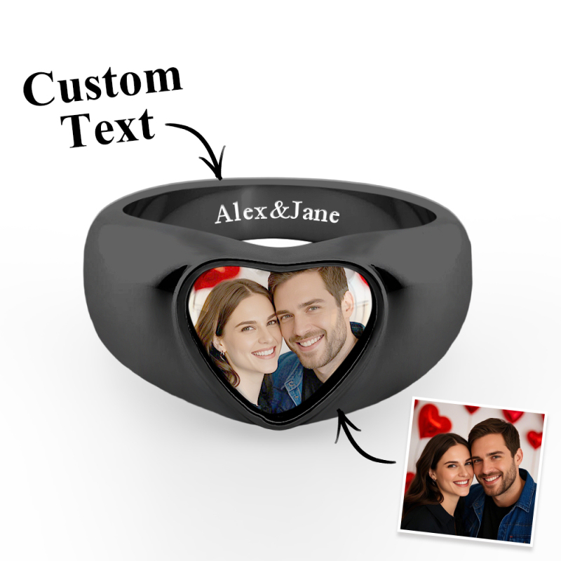 Customizable chunky photo rings: Click "Customize Now" upload one prepared legible picture and continue to click "text engraving", choose the font, then input the words. You will get an unparalleled signet ring. With the picture of your loved ones, family get-together, friends reunion or important event on the face of the ring, keep some loving memory always by your side.