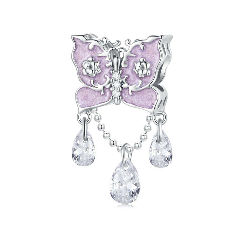 Diamond Butterfly Charm Silver