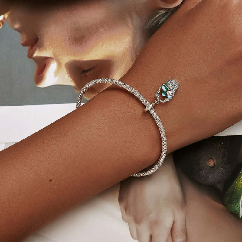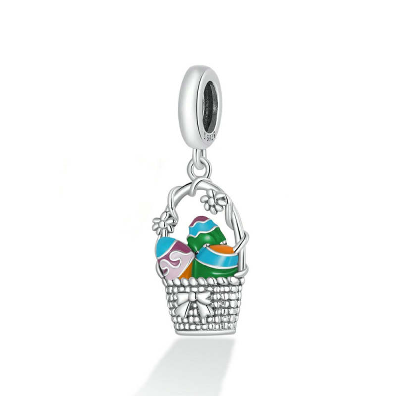 Easter Egg Basket Enamel Charm Silver Easter Gifts