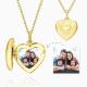 Embossed Printing Heart Photo Locket Necklace with Engraving 14k Gold Plated