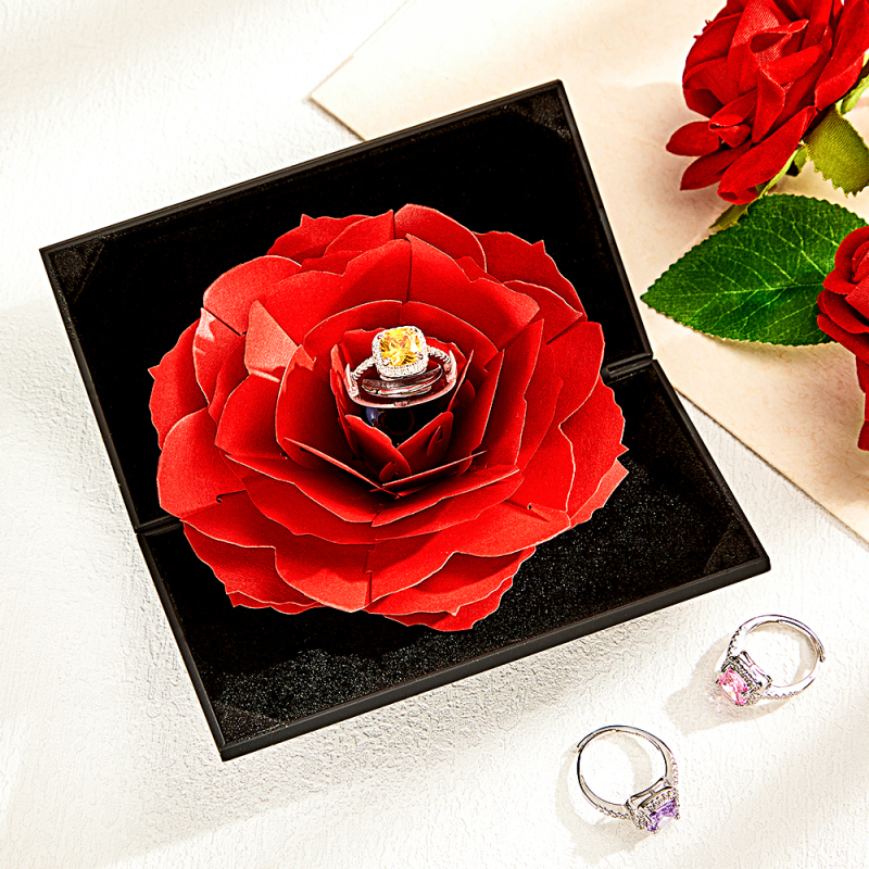 Our carefully designed Valentine's Day gift captures the essence of romance, proving the enchanting power of love. The red rose cleverly concealing the ring transforms the ordinary into the extraordinary. It's a surprise gift that exceeds expectations, seamlessly combining the ring with the beauty of a blooming rose. This gift is not just a piece of jewelry; it's the ideal choice for Valentine's Day or anniversaries to present to your girlfriend. Symbolizing endless surprises and heartfelt moments, the red rose adds a touch of allure, making the entire experience more romantic and unforgettable. Celebrate your love with an adjustable colored ring jewelry, beautifully presented in a rose gift box, commemorating your extraordinary journey on anniversaries, Valentine's Day, or birthdays.