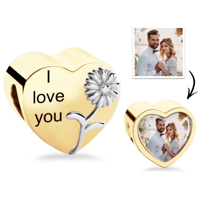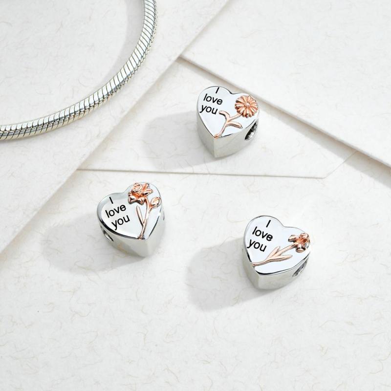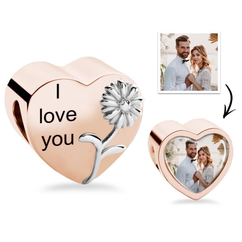 Engravable Birth Flower Charm Beautiful Heart charm Birthday Gift