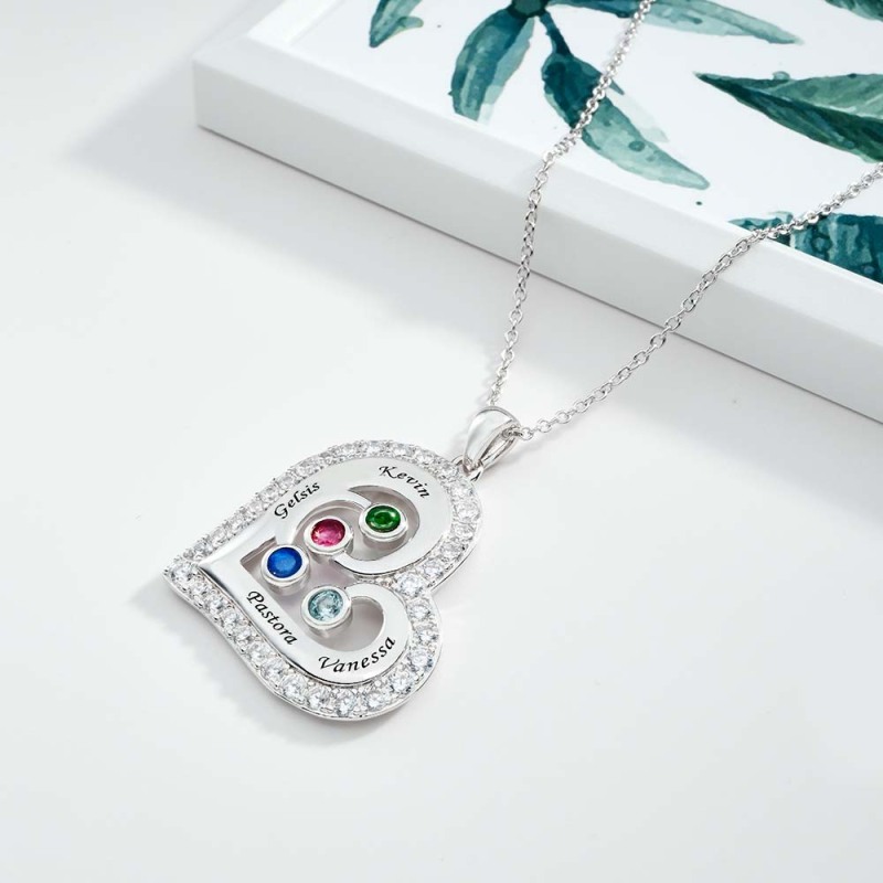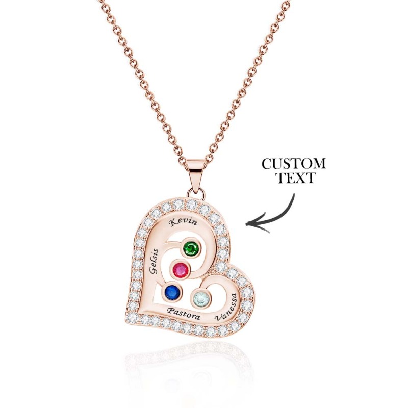 Engravable Heart Hollow Out Necklace WIth Zircon Decor Family Gifts