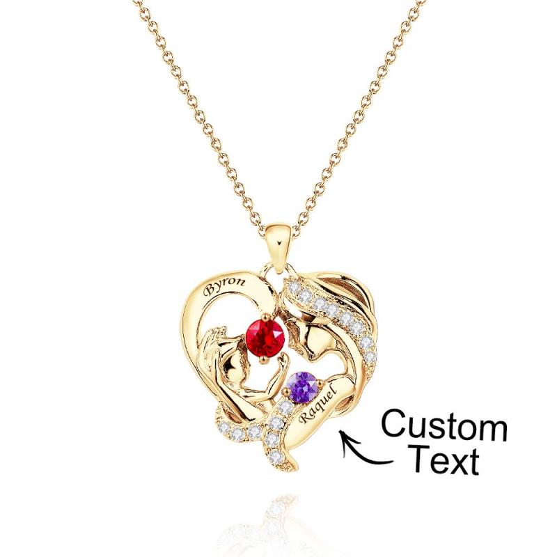 Engravable Mom And Baby Necklace With Birthstone Warm Gifts For Mom