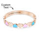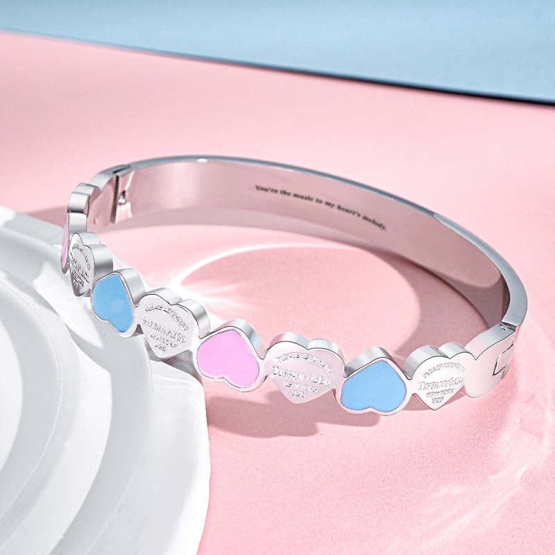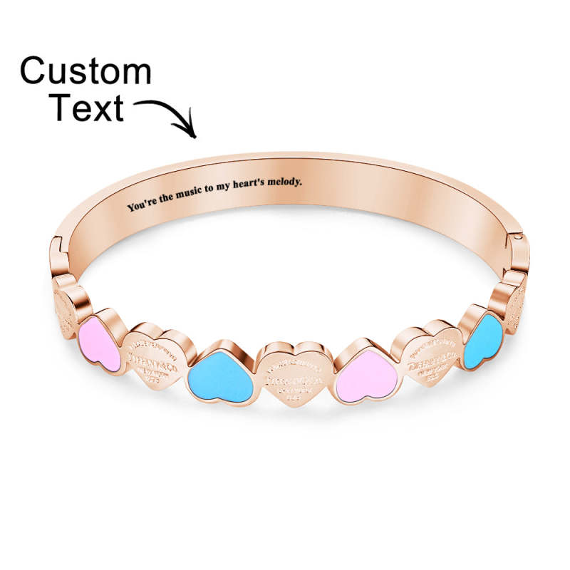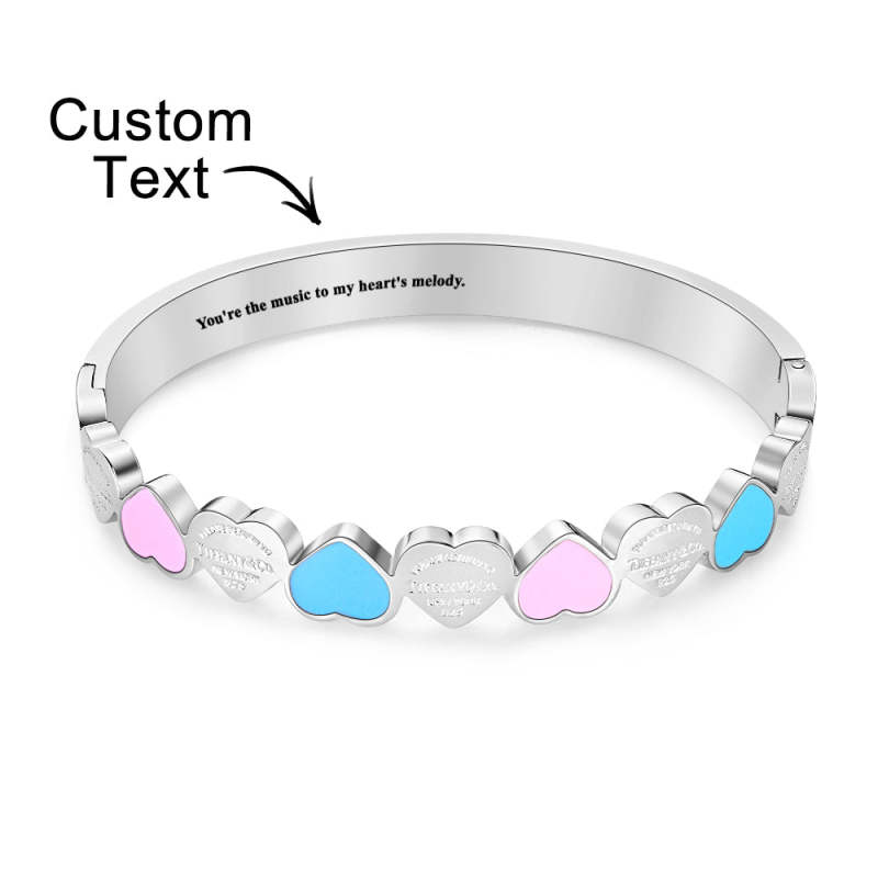 A sweet and lovely bracelet, this bracelet is themed with colorful love shapes. It not only looks cute and charming but can also be customized with short text to add personalization and commemorative meaning.