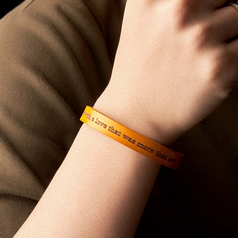 Men's leather bracelet with custom text is made of high-quality leather, which has a delicate texture and will gradually show a unique retro style as time goes by. The flexibility of the leather makes it very comfortable to wear, and you will not feel uncomfortable even if you wear it for a long time.