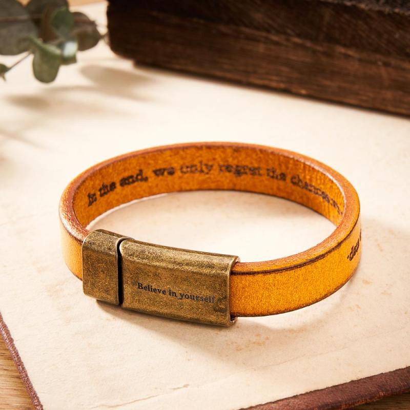 Engravable Vintage Leather Bracelet Simple Magnetic Buckle Bracelet Gifts For Men
