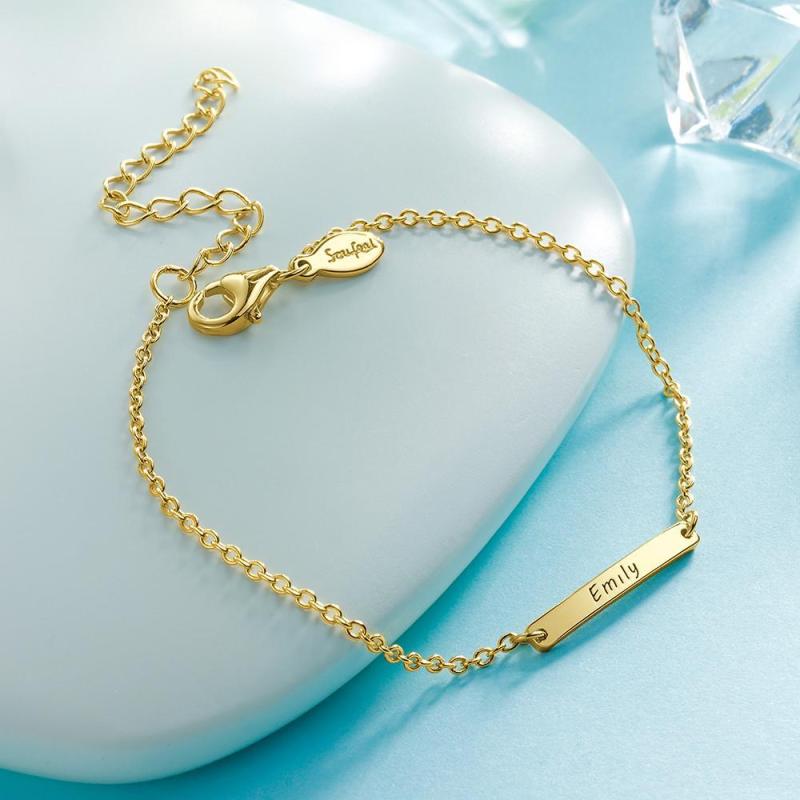Engraved Bracelet Name Bracelet Memorial Gifts for Kids 14k Gold Plated
