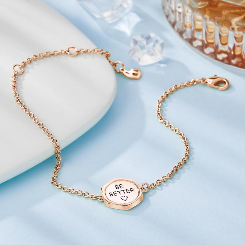 Engraved Bracelet Victory Wishing Coin Bracelet Gift for Her Rose Gold Plated