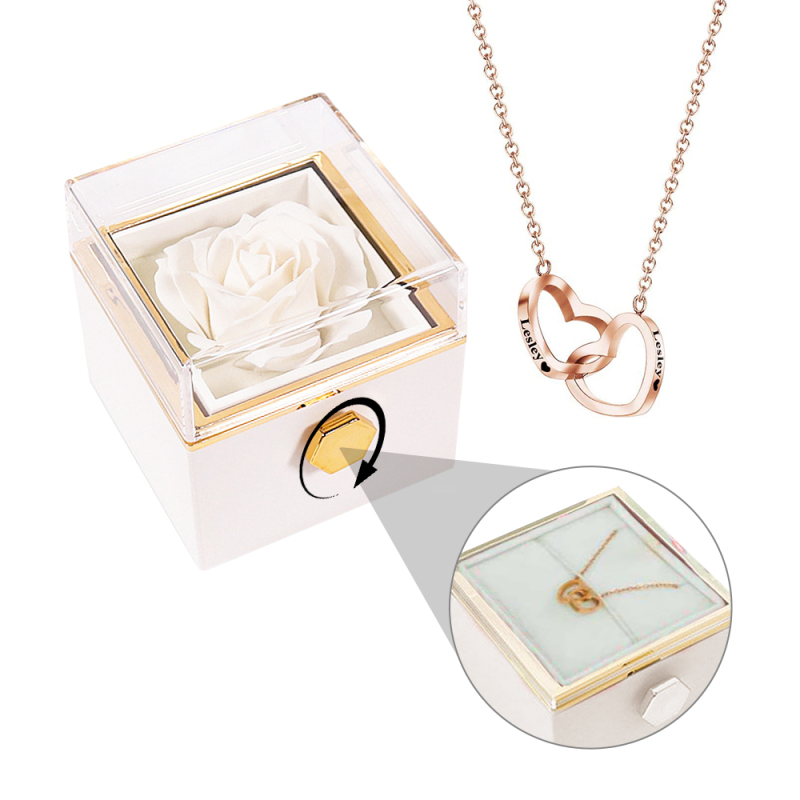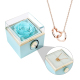 Engraved Heart Necklace with Reversible Preserved Flower Jewelry Box Red