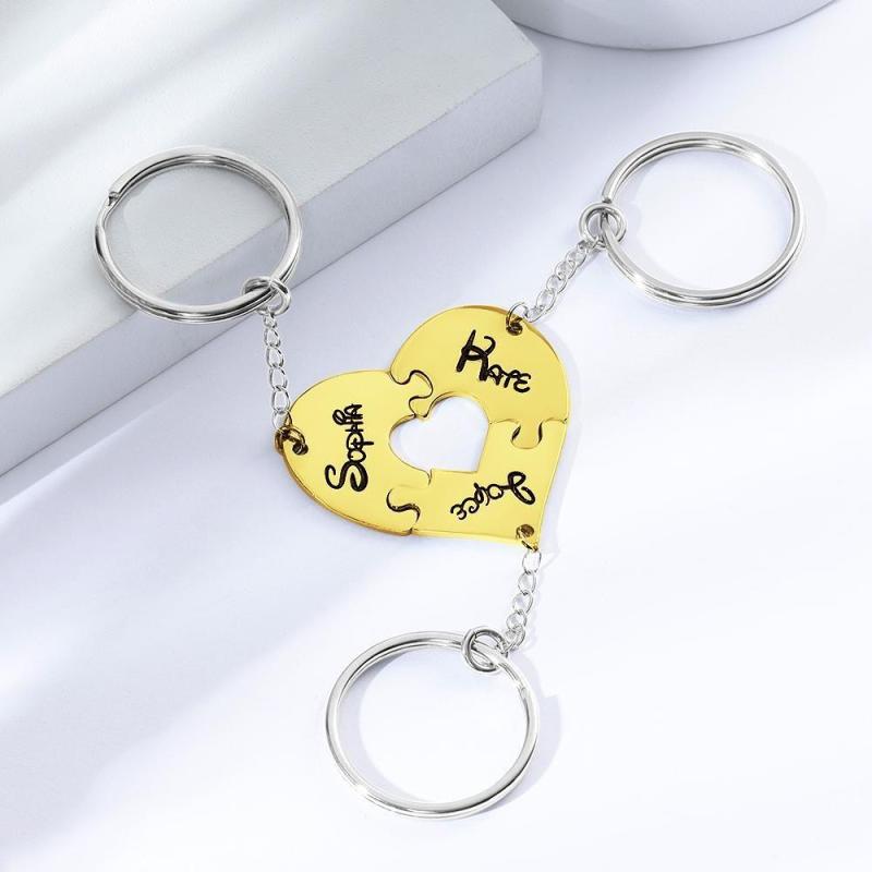 Engraved Keychain, Name Keychain Memorial Gifts 14k Gold Plated
