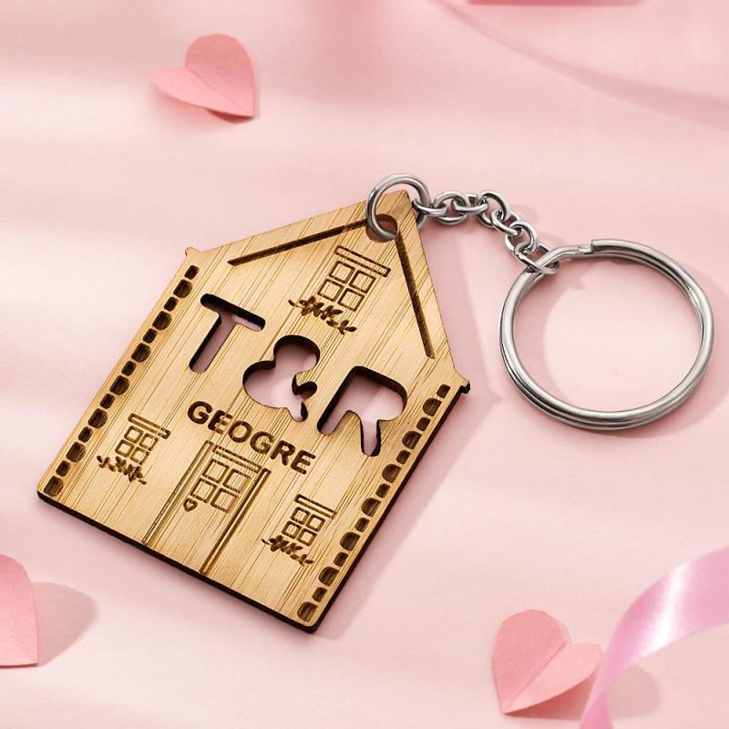 Engraved Keychain With Heart Wooden Keychain Family Keychain Memorial Gifts