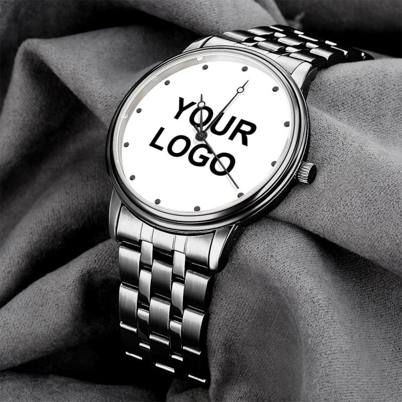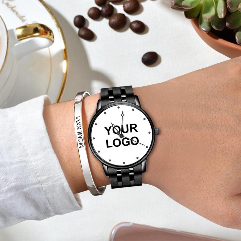 Engraved Men's Black Alloy Bracelet Photo Watch 38mm-Father's Day Gift