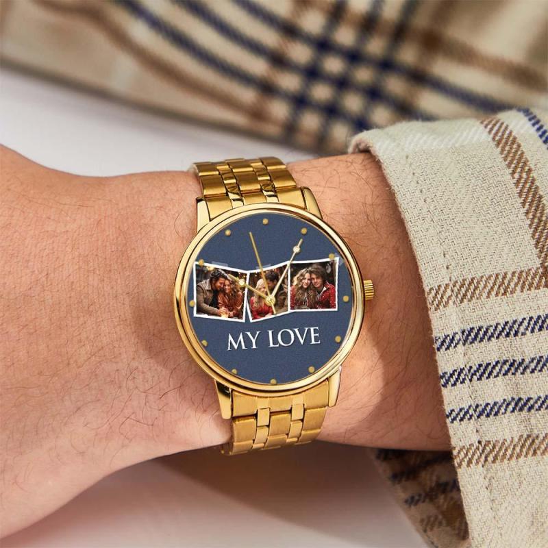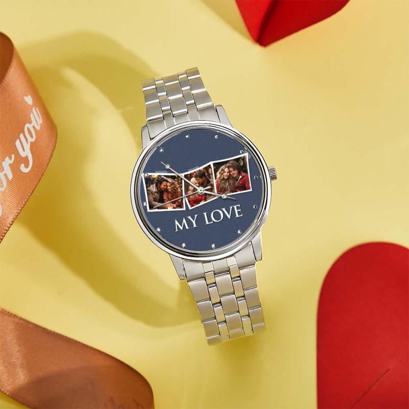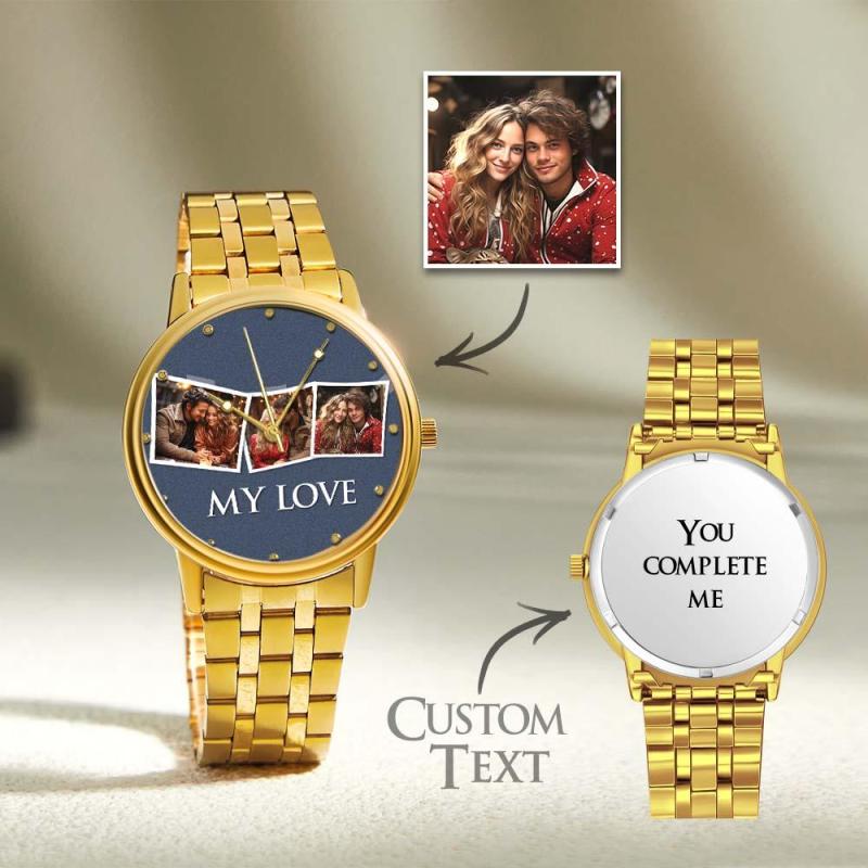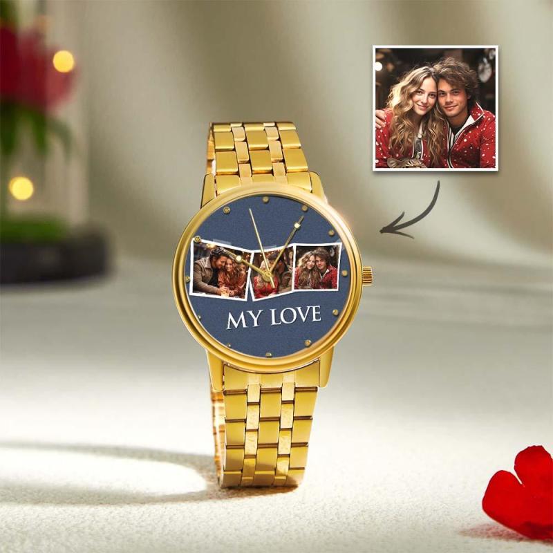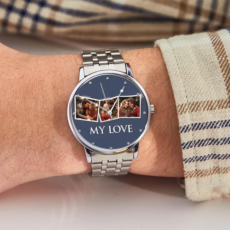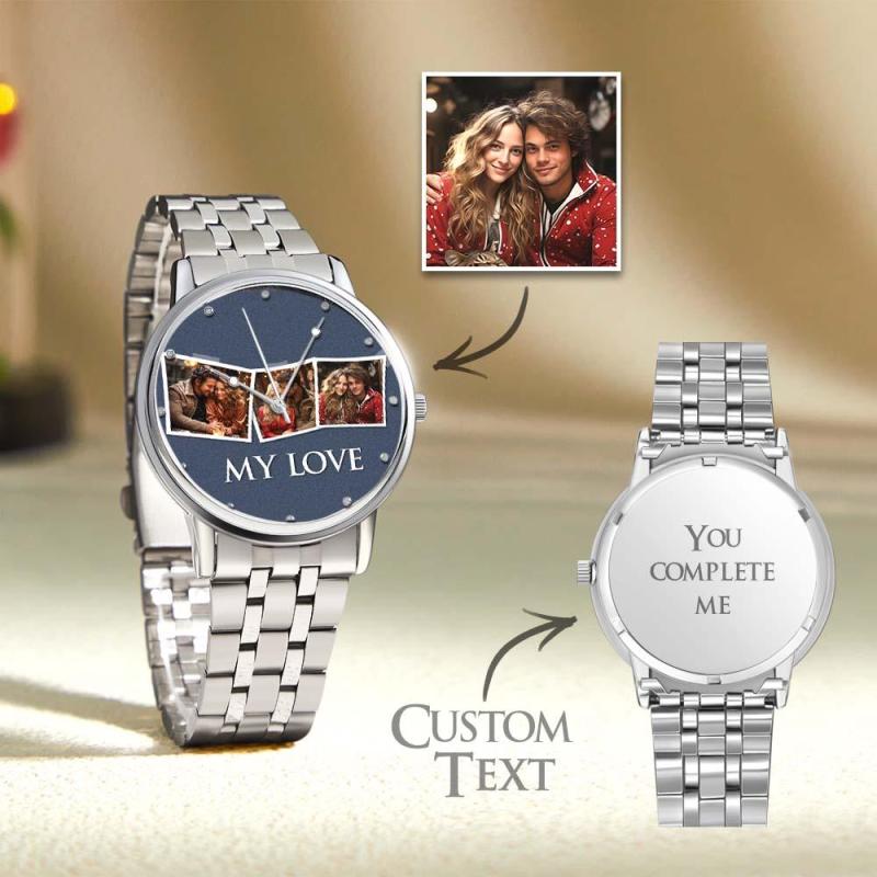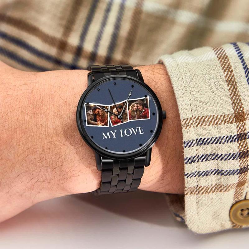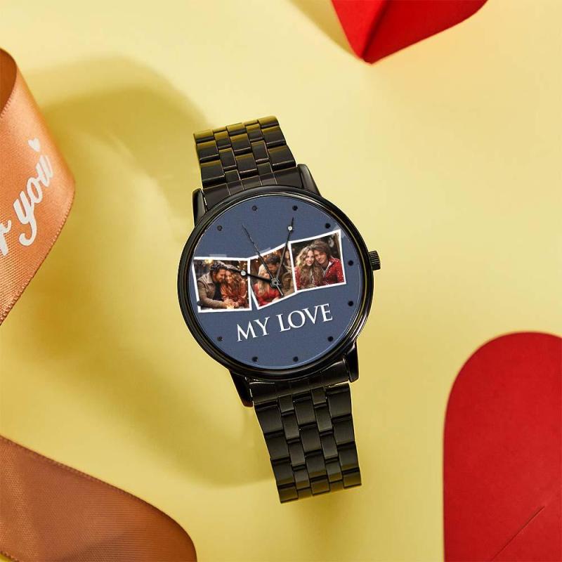 Personalized Engraved Photo Watch Christmas gifts Men's Black Alloy Bracelet Photo Watch To My Boyfriend I Love You Gifts