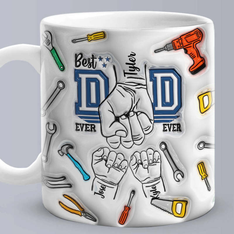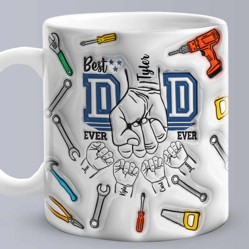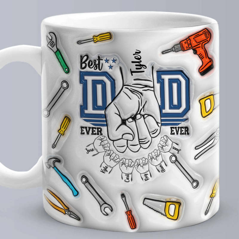 Father's Day Gifts Custom 1-6 Kids Personalized Names 3D Inflated Effect Printed Mug Best Dad Ever