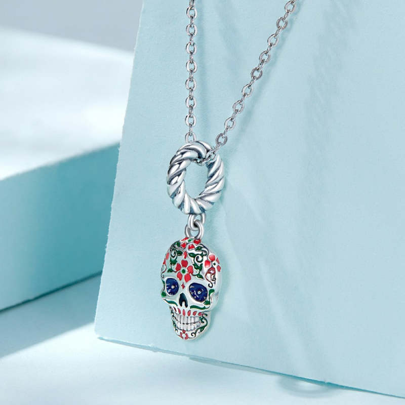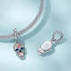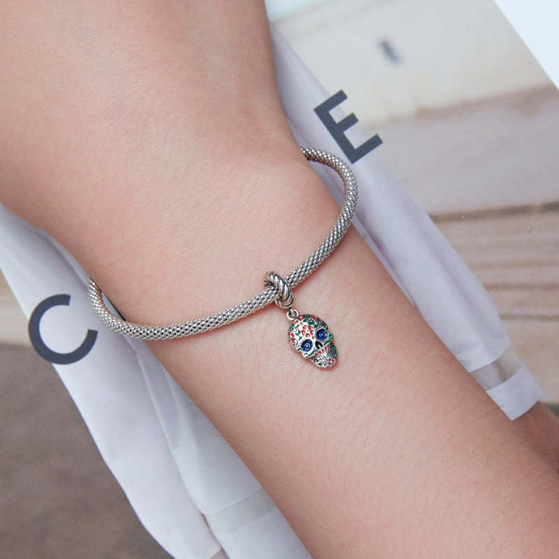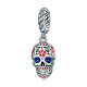 Flower Skull Head Dangle Charm Silver