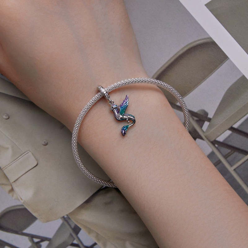 Flying Dragon Colorful Charm Silver