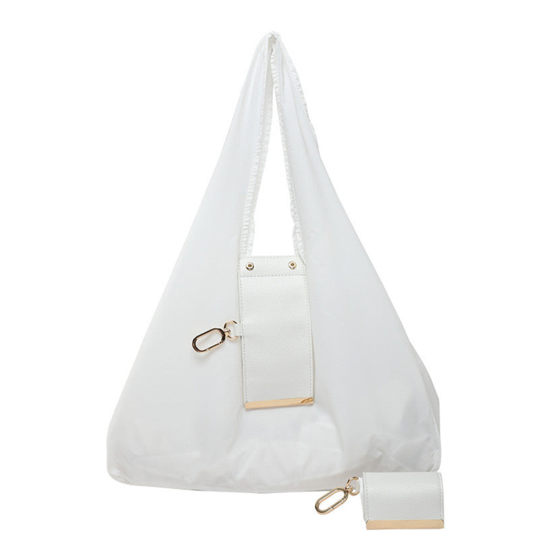2-in-1 Design: A full-size tote bag that folds into a convenient keychain pouch.