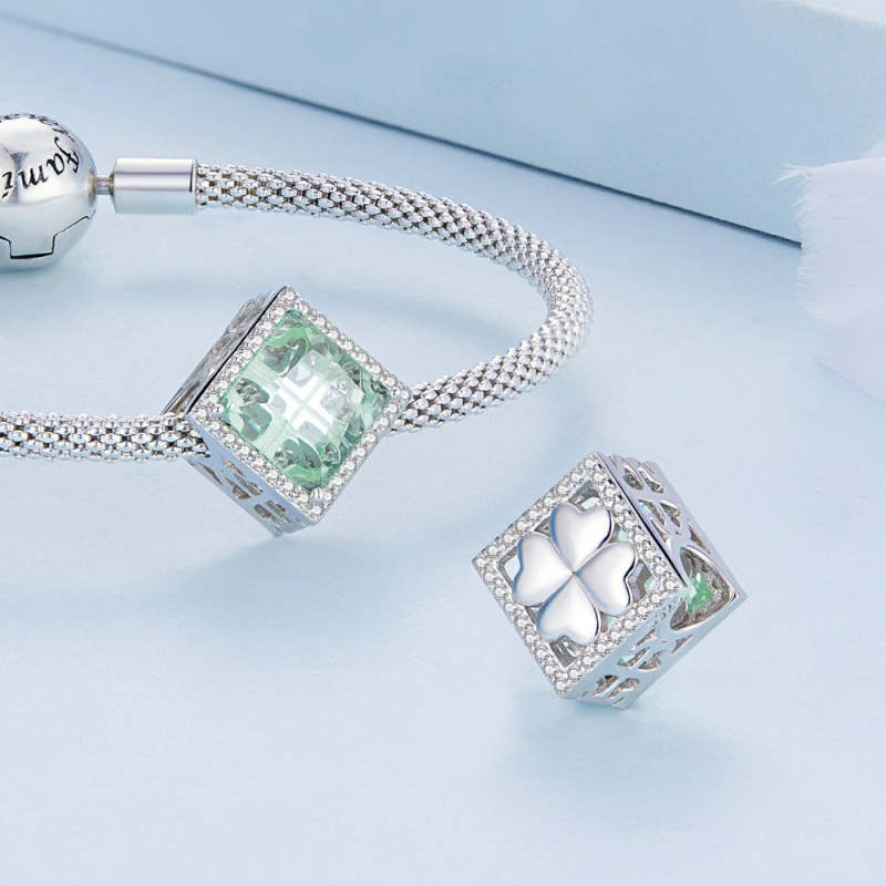 Four Leaf Clover Light Green Charm Silver