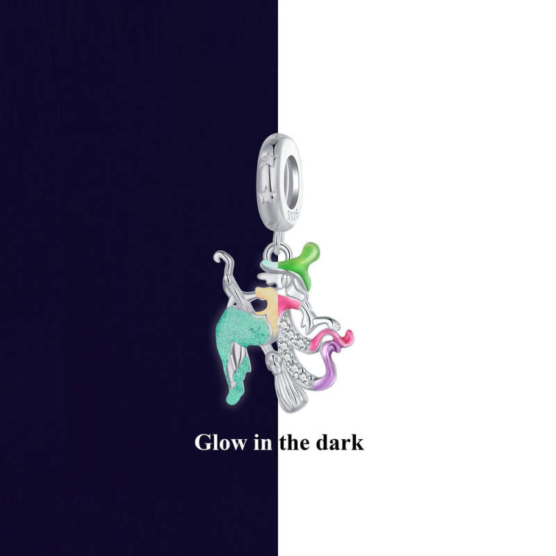 Glow-in-the-dark Halloween Witch Dangle Charm Silver