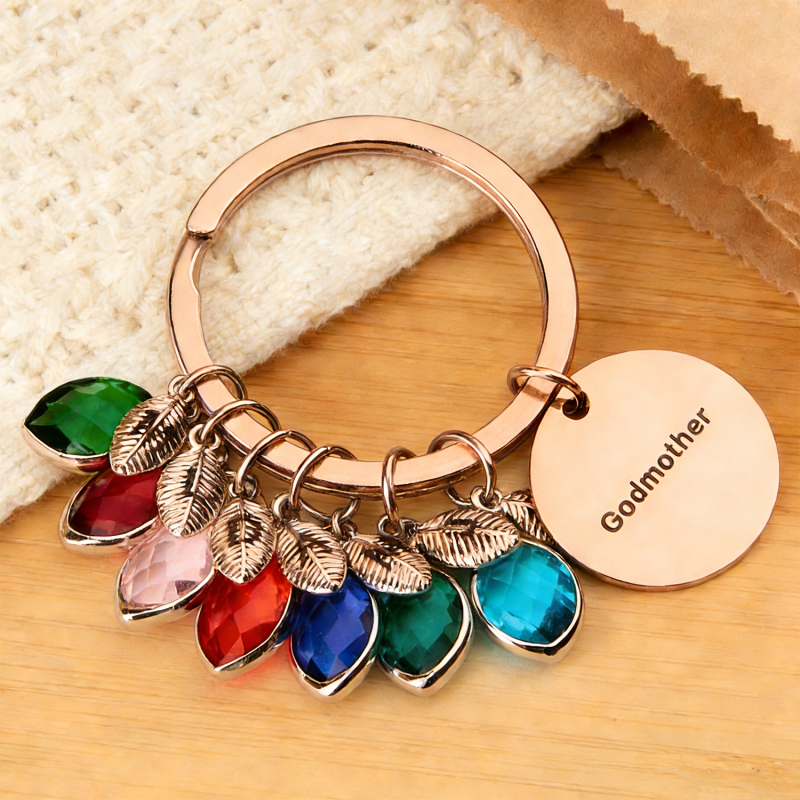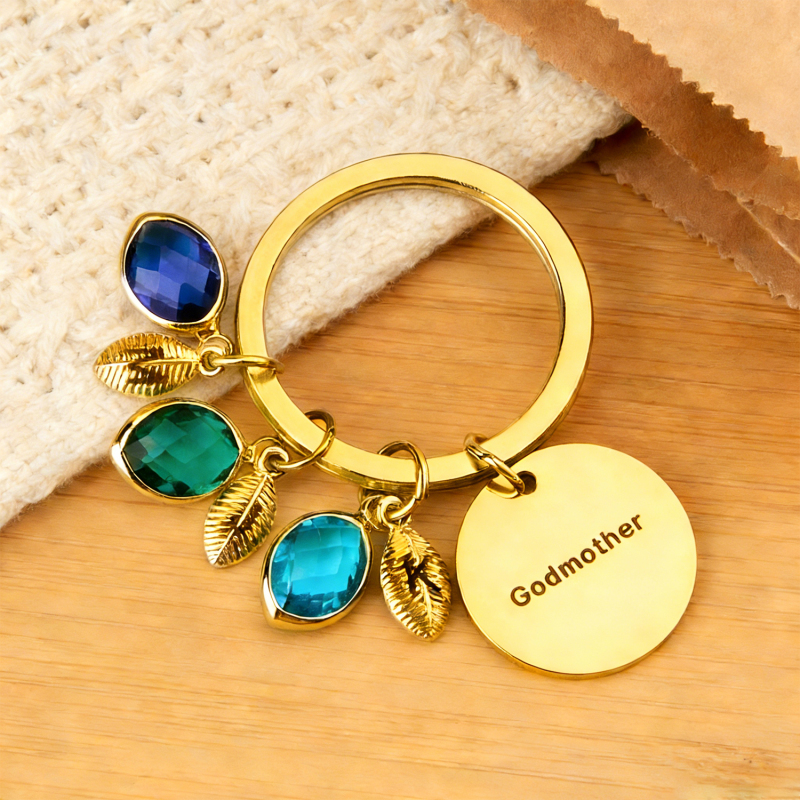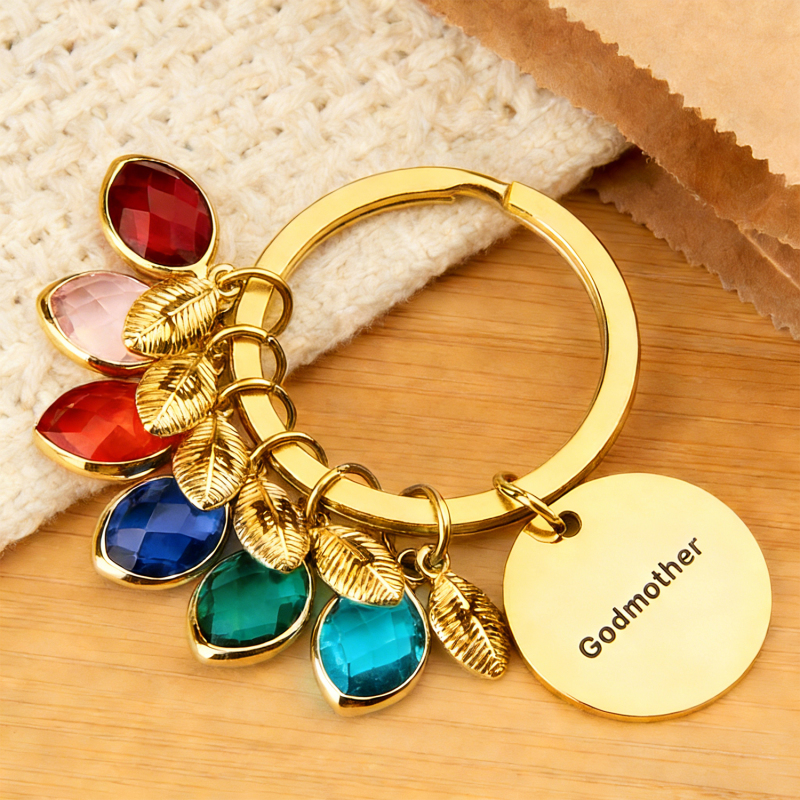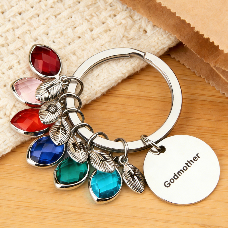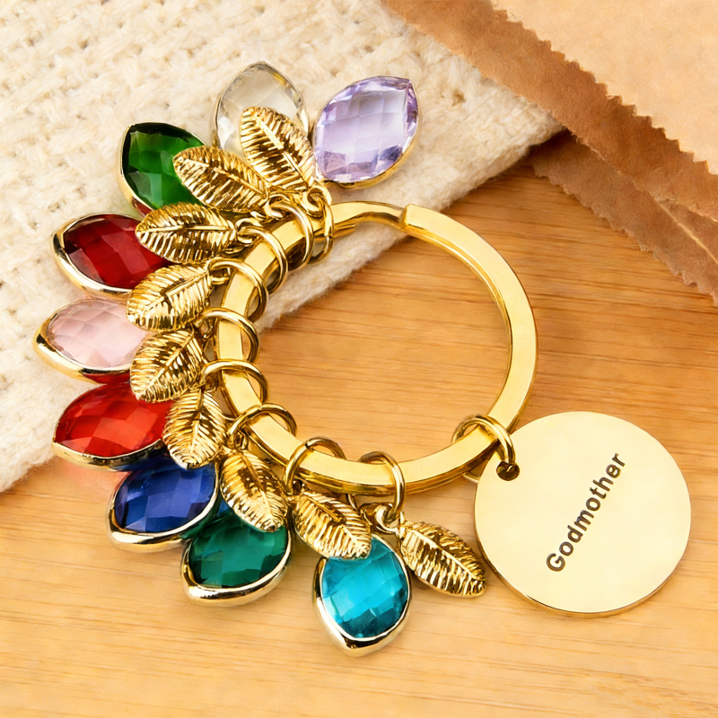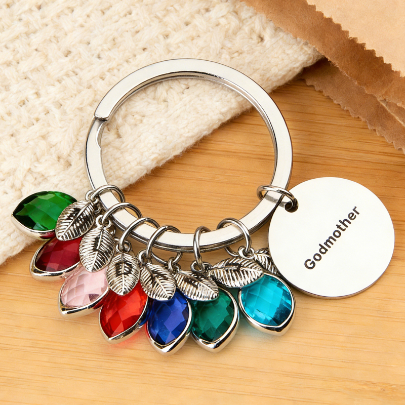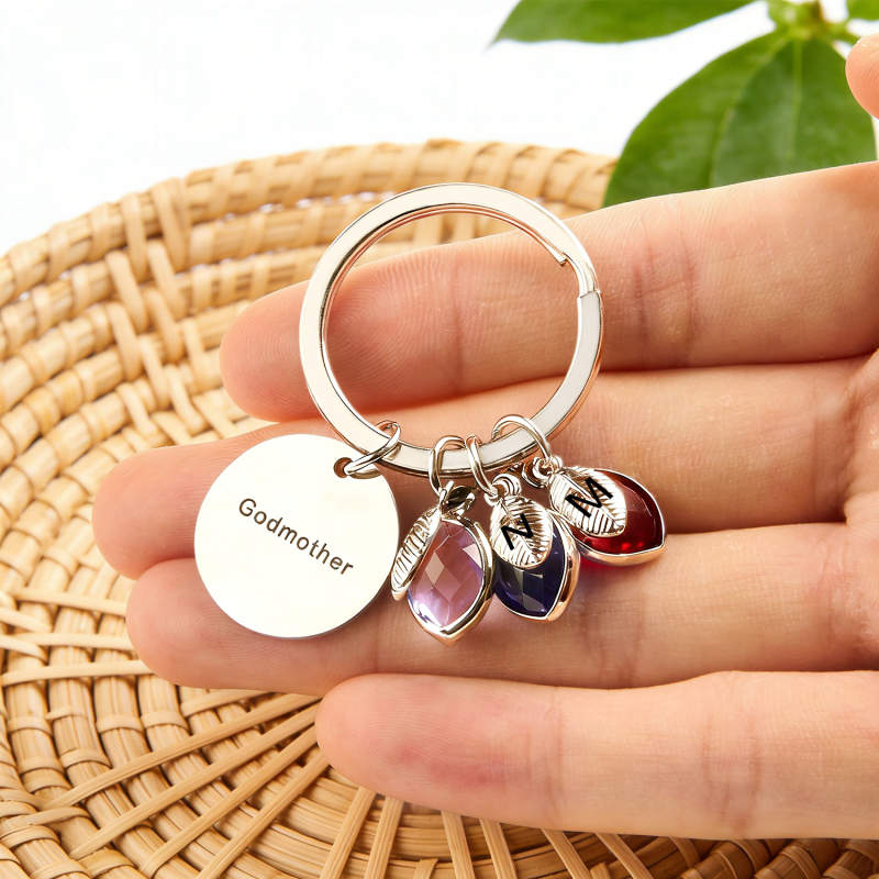 This thoughtful Custom Name Keychain with Birthstone and Leaf Pendant is the perfect gift for your godmother. Personalize it with her name and a sparkling birthstone to add a meaningful touch she’ll treasure every day. The delicate leaf pendant complements any style, making it a versatile accessory for days out or special occasions. Crafted with care, this lightweight yet durable keychain is designed to be a cherished keepsake that celebrates both her individuality and the bond you share.
