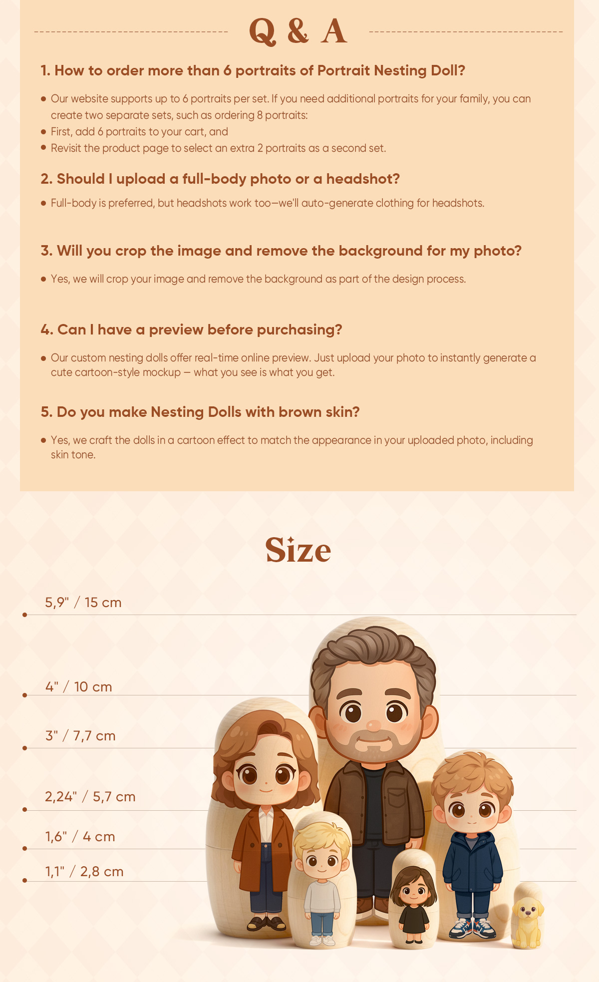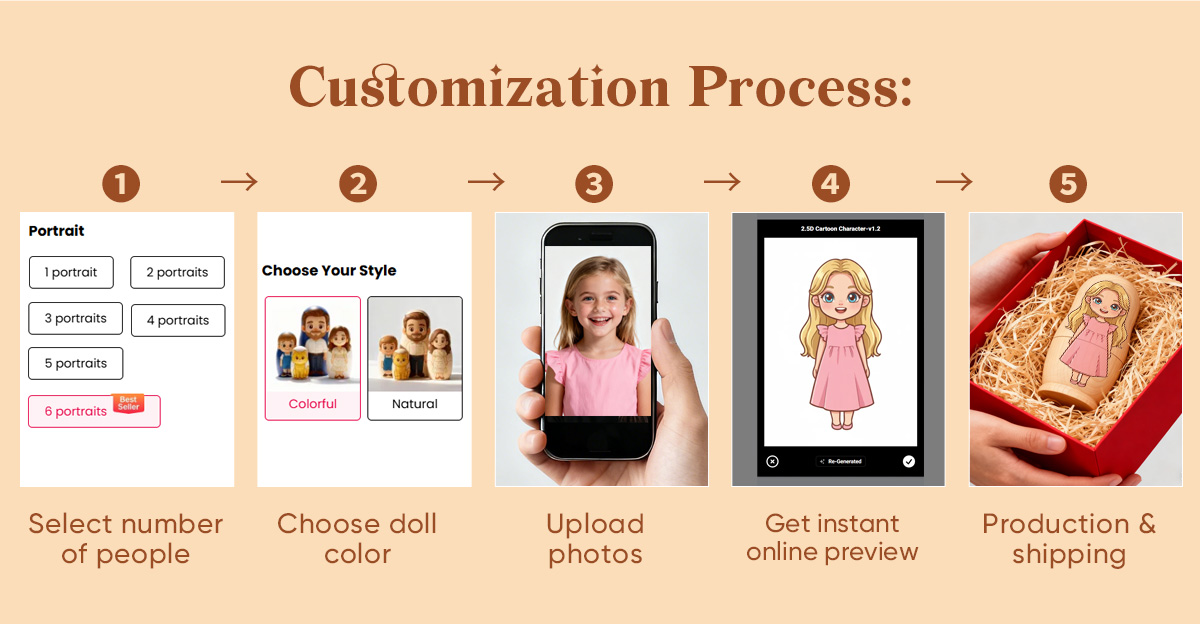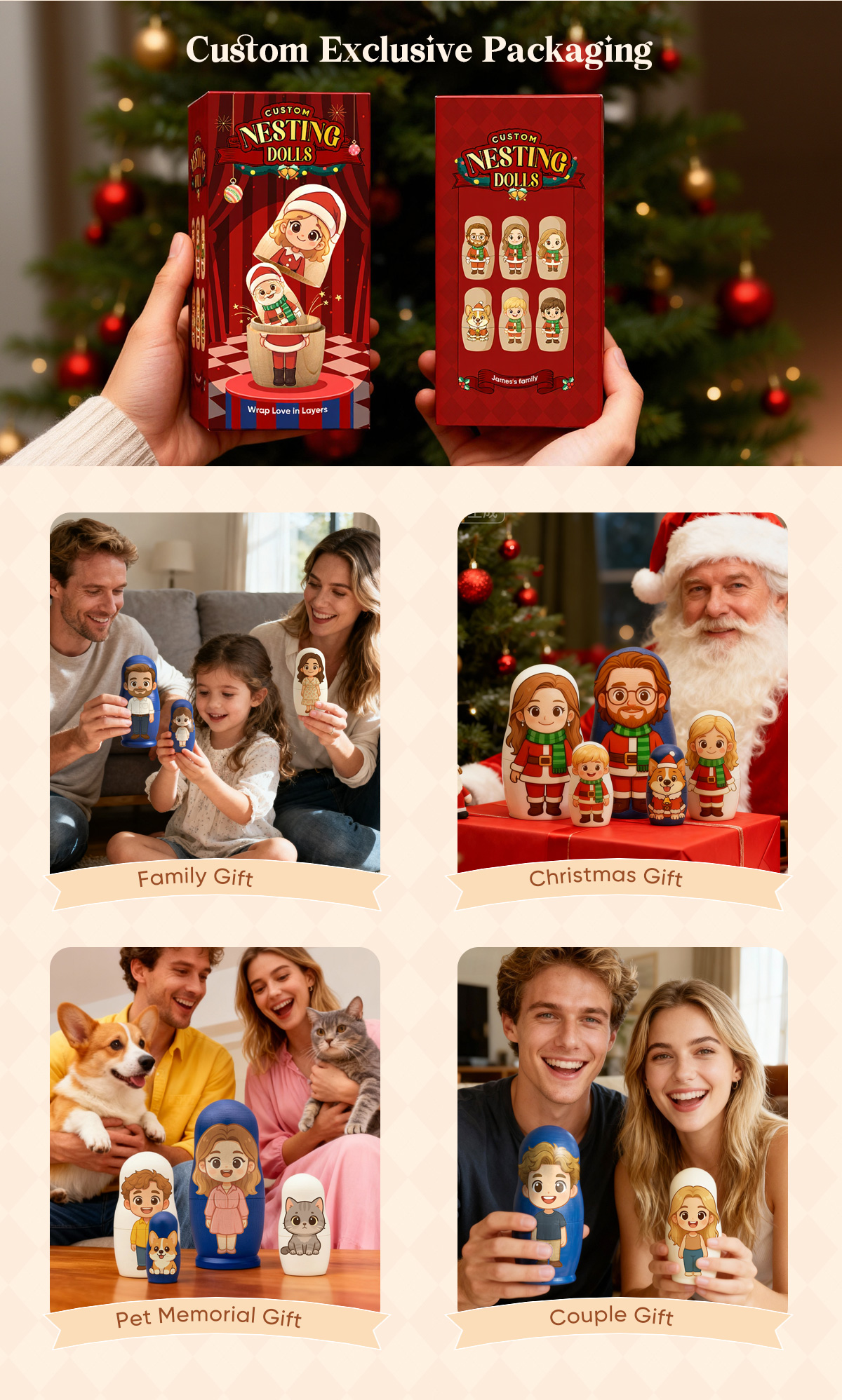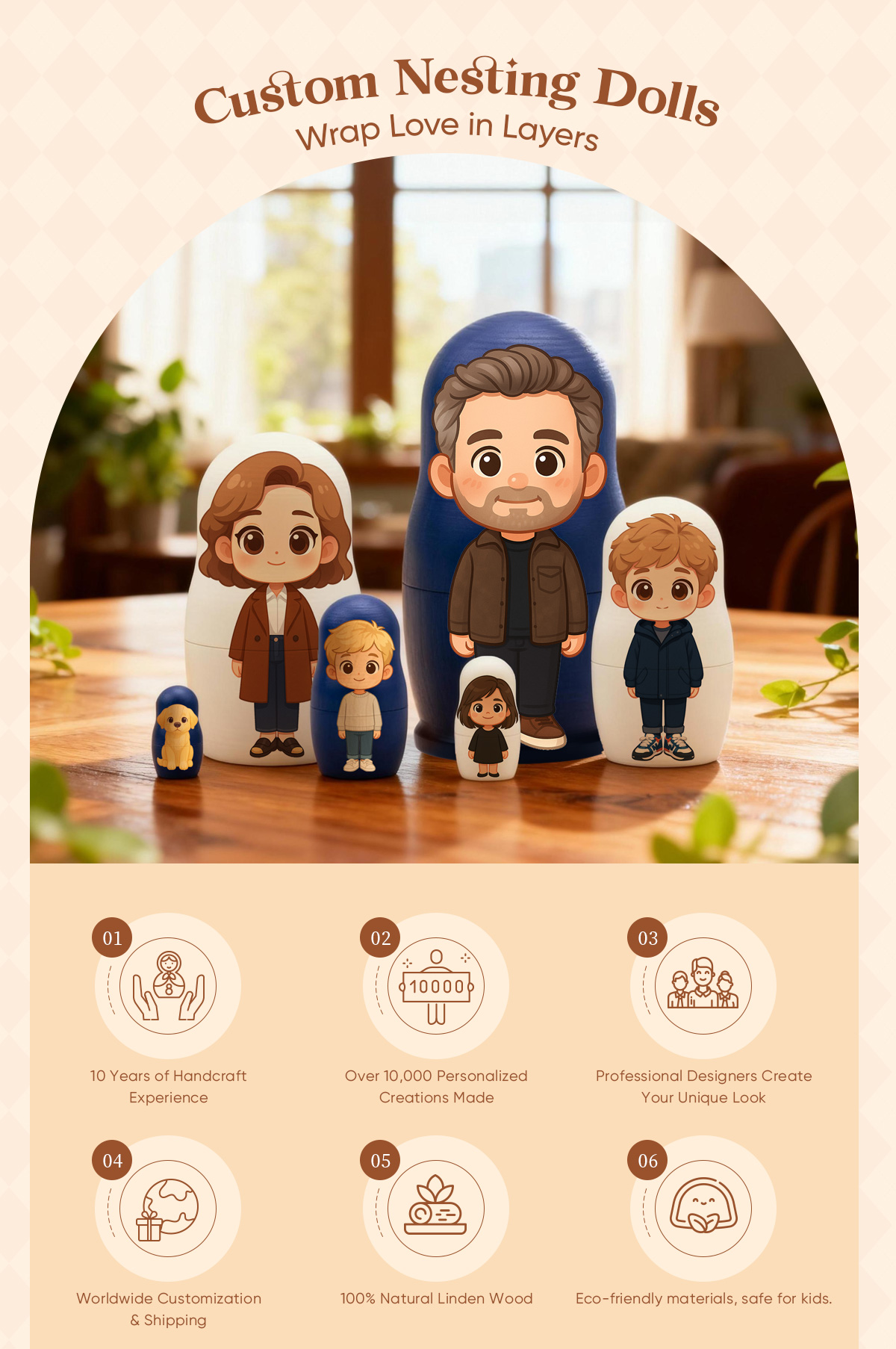 Personalized Portrait Nesting Doll with Preview Effect Custom Photo Family Portrait Cartoon Style Gift Photo Christmas Gift