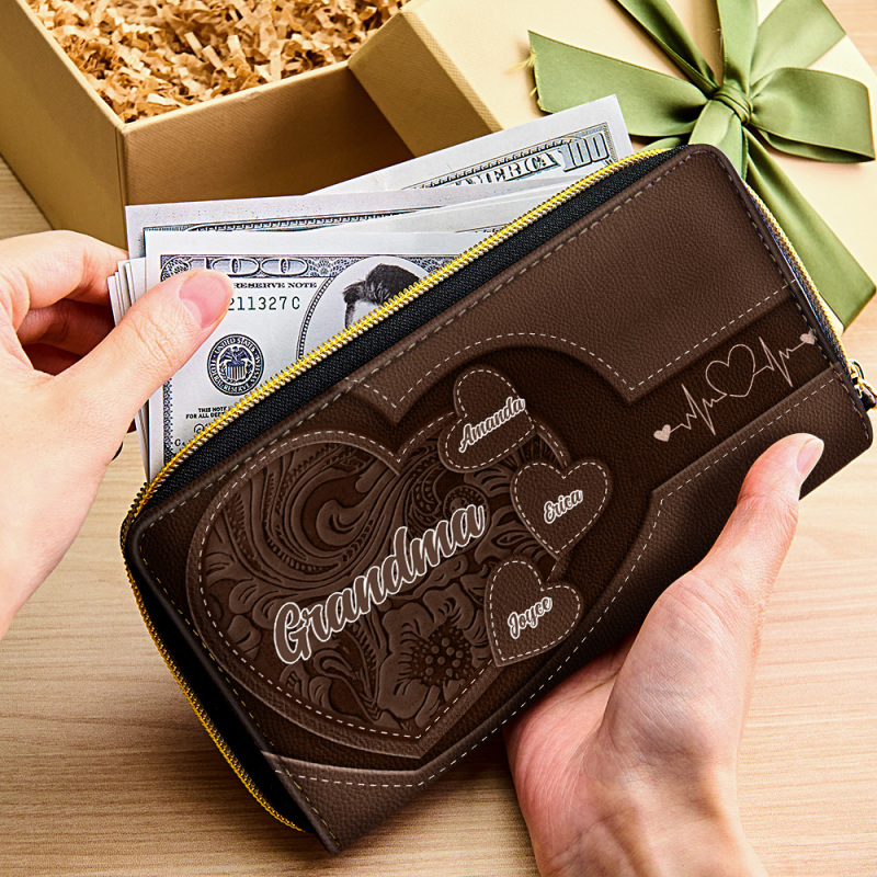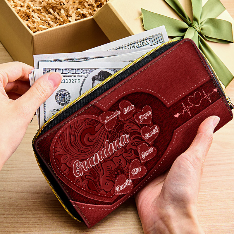 Creating lasting memories for your grandma or mom with our Personalized Leather Long Wallet! Customize this elegant wallet with Grandma's name and her favorite color to create a truly unique and meaningful gift. Crafted with exquisite leather and meticulous attention to detail, this long wallet is more than just an accessory—it's a symbol of love and appreciation that will resonate deeply with Grandma. Whether it's for Christmas, her birthday, Valentine's Day, Mother's Day, or an anniversary, this personalized touch adds an extra layer of sentimentality that will warm her heart. With its spacious compartments and durable construction, this wallet is as practical as it is beautiful. It's perfect for keeping cards, cash, and mementos close at hand, making it a cherished companion for Grandma's everyday adventures.