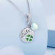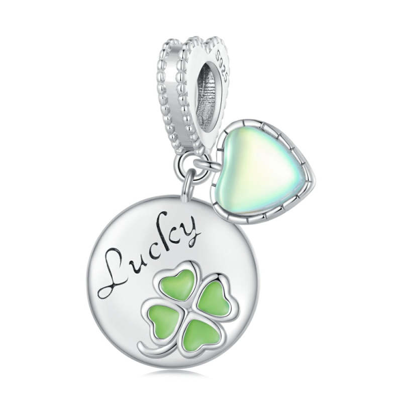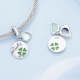 Green Four-leaf Clover Round Shape with Glass Heart Lucky Dangle Charm Silver