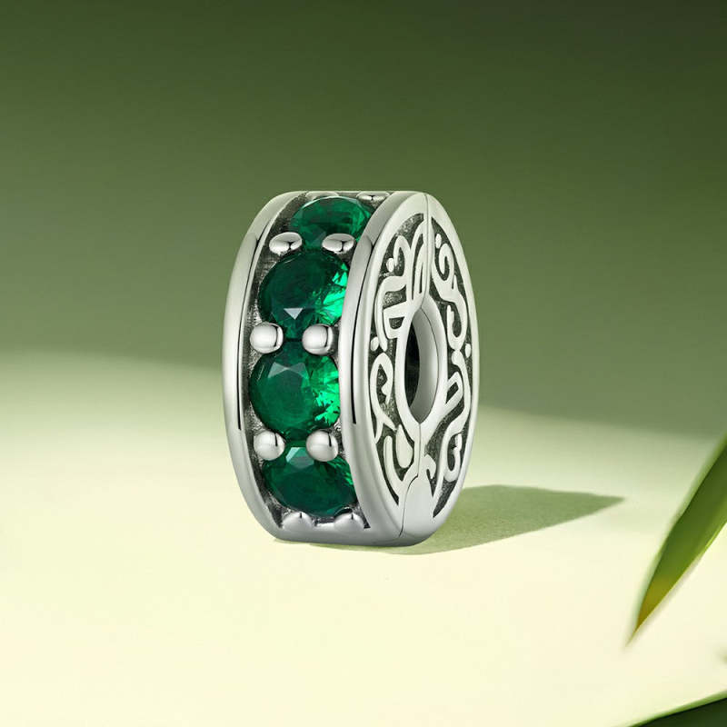 Green Gemstone Stopper Charm Spacer Charm Silver