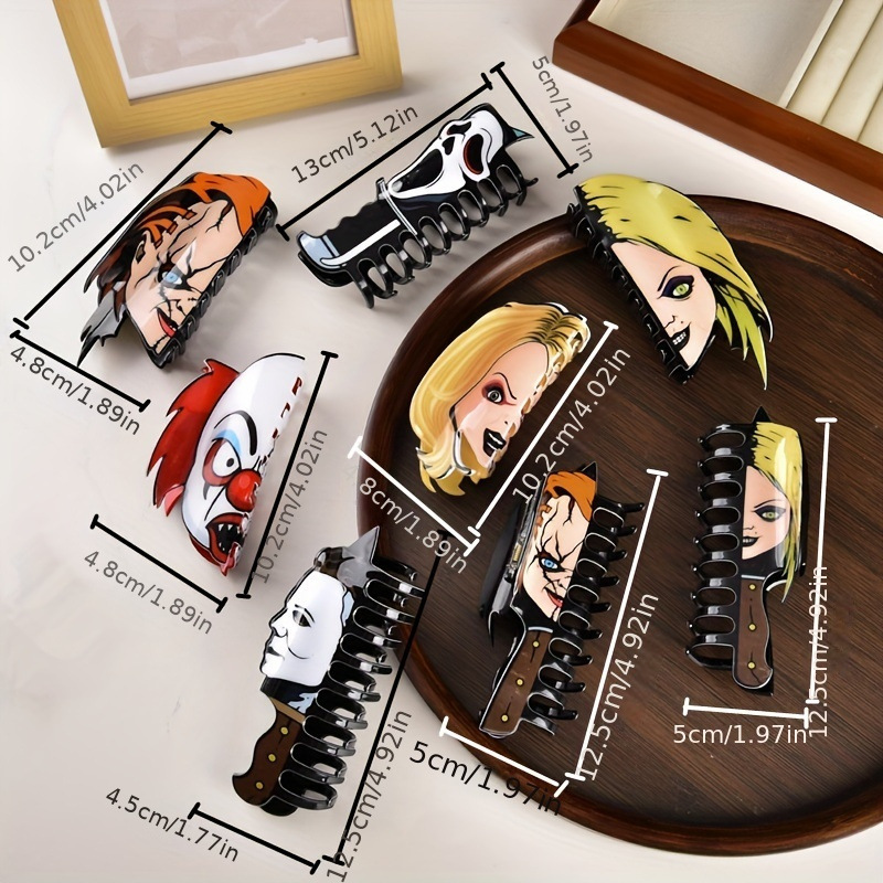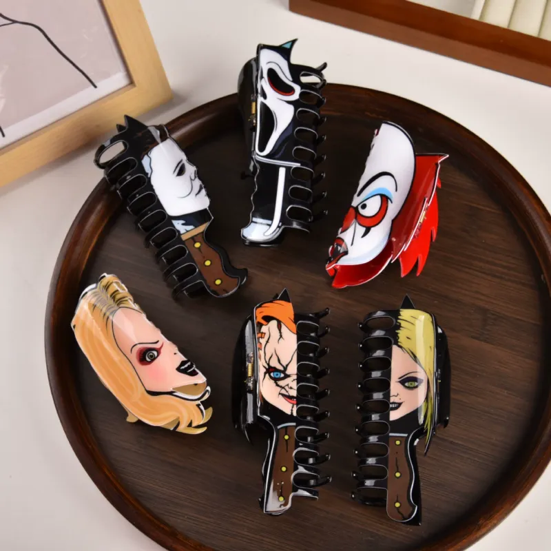 Elevate your Halloween look with our Halloween hair clips-featuring fun clowns, ghost faces, and more-perfect for pinning the back of women's hair. This cute yet spooky accessory adds a festive touch to any look and makes a thoughtful Halloween gift. Lightweight and easy to wear, it's the perfect accessory for a festive outfit or a gift for a friend who loves Halloween style.