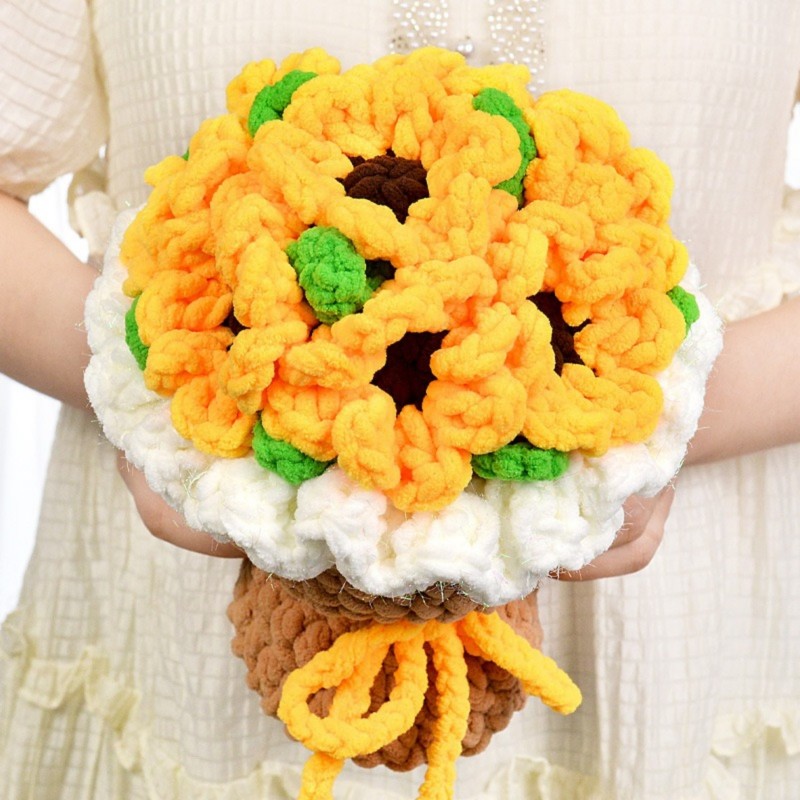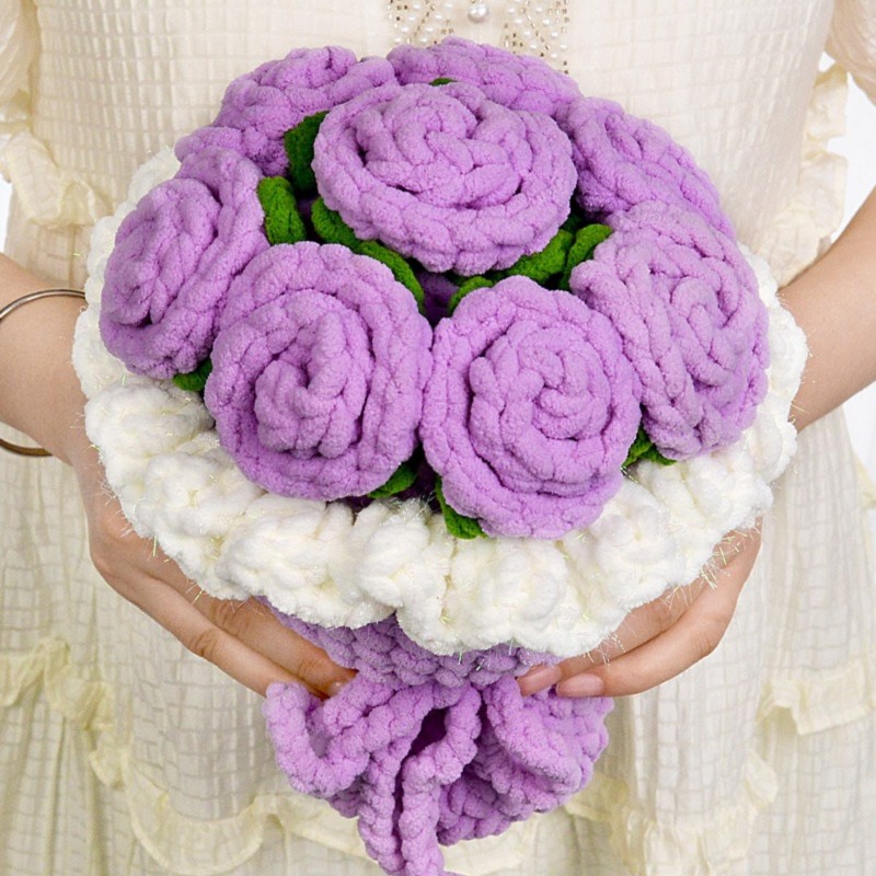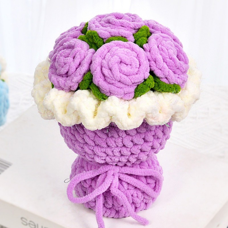 Hand-crocheted from soft ice chenille yarn, this rose bouquet captures the moment of bloom with its unique texture and gentle touch. Each petal is carefully shaped—fluffy yet resilient, as if freezing time in its most beautiful form.