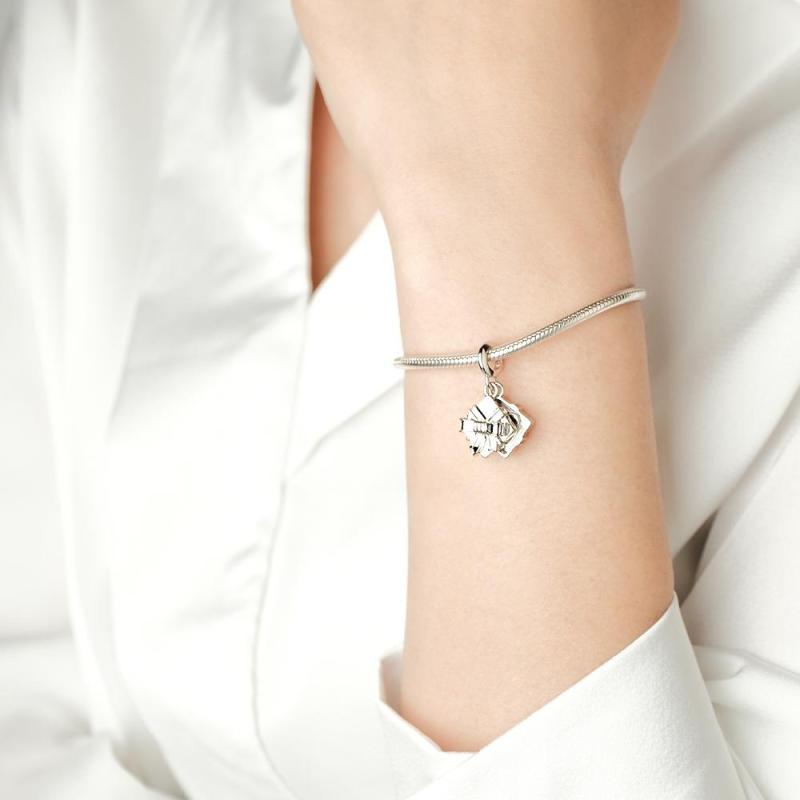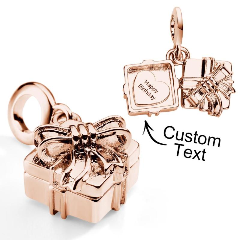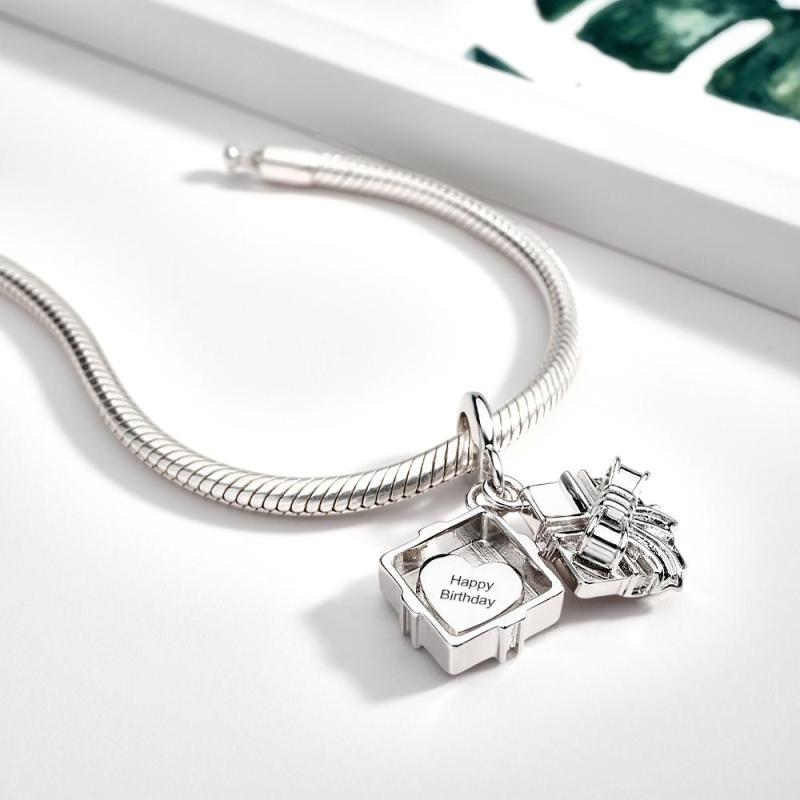 This openable dangle charm in the shape of a gift box is a perfect addition to any bracelet or necklace. Designed to fit all types of accessories, it makes an ideal gift for birthdays or Mother's Day. Available in silver, gold, and rose gold, this charm adds a touch of elegance and style to any jewelry collection.