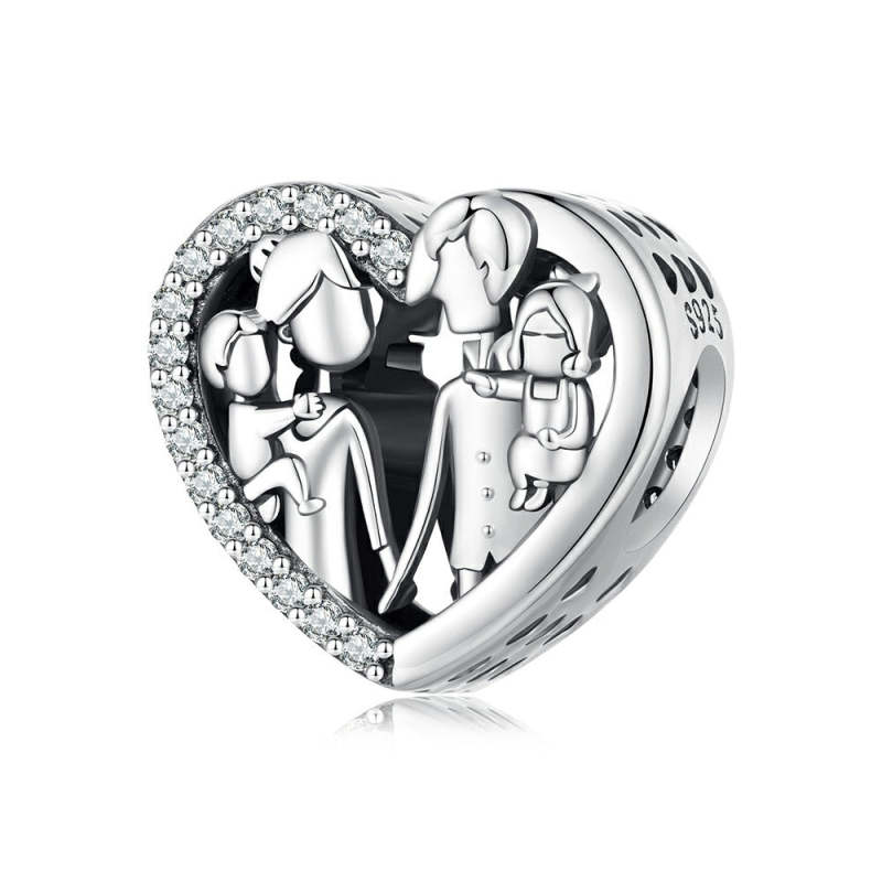 Happy Family Heart Charm Silver